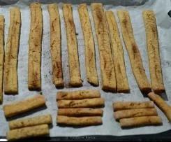 - Prendete la pasta frolla dal frigorifero e stendetela a circa mezzo centimetro, su un piano ben infarinato. Ritagliate le strisce con le quali andremo a realizzare la “cassetta di legno”. Serviranno due bacchette orizzontali per lato, quindi in totale 4 bacchette orizzontali per i lati lunghi e 4 bacchette orizzontali per i lati corti. Le strisce devono avere la stessa lunghezza dei lati della torta. Quindi io, avendo fatto una torta quadrata, ho ottenuto 8 bacchette da 22×2,5 cm. Inoltre bisogna realizzare 8 strisce verticali di circa 8×2 cm che serviranno per realizzare gli angoli della cassetta. Sulle strisce orizzontali, realizzate degli intagli, con uno stuzzicadenti oppure con la punta di un coltellino per creare un effetto legno.