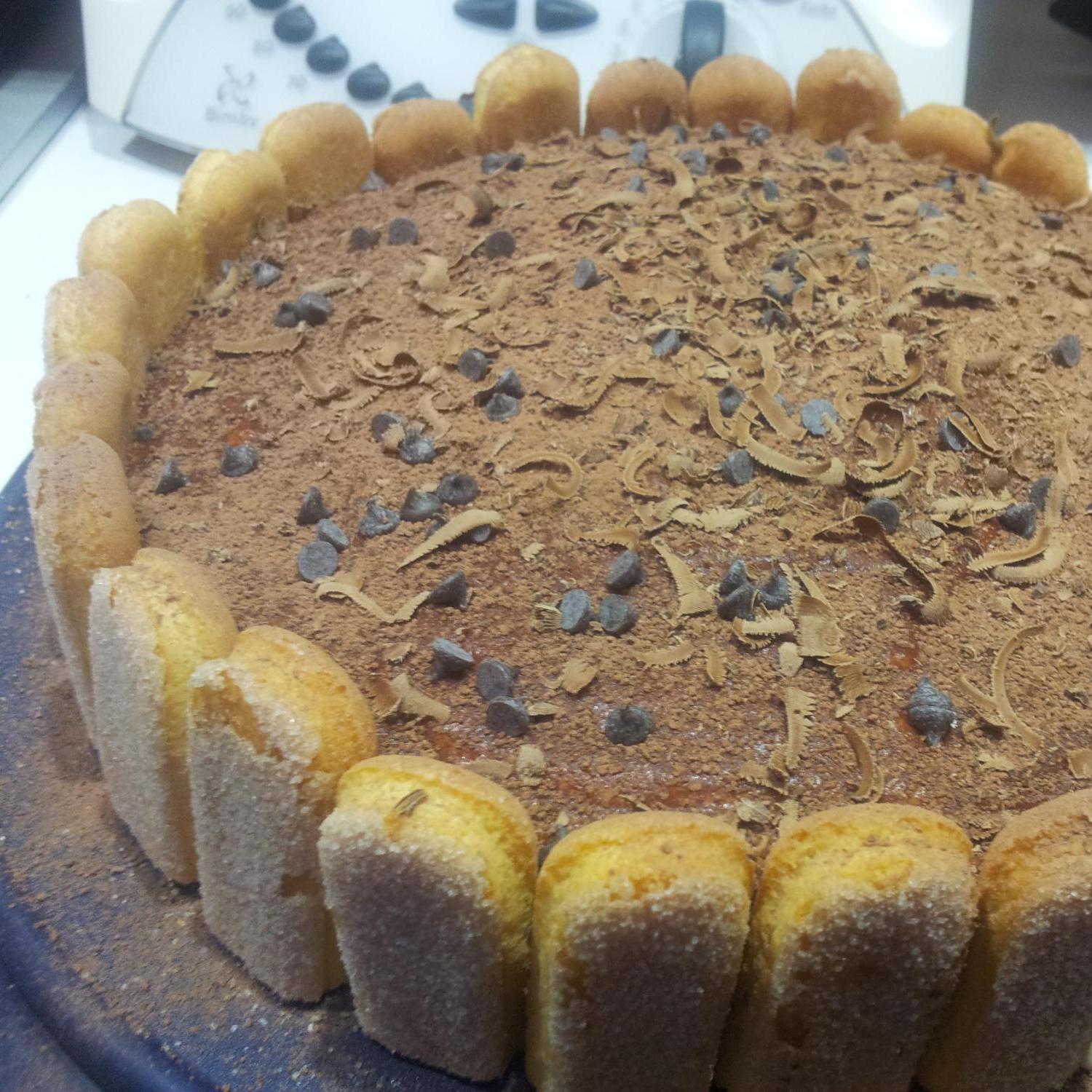 Ideale per un'occasione o per un invito a cena, questa torta è un modo alternativo per fare il tiramisù utilizzando uova cotte all'interno della crema. Ricetta modificata dal libro "Torte e Biscotti volume 2"