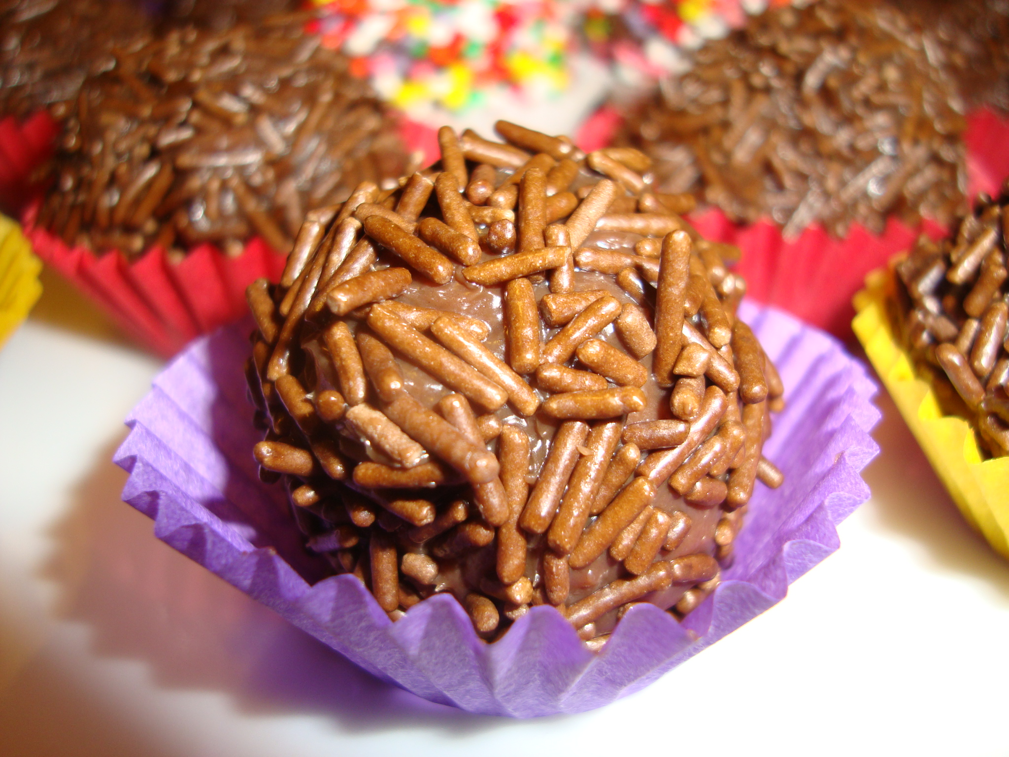 Prendere con un cucchiaino il composto grande circa come una noce, rotolarlo tra i palmi delle mani formando delle palline e poi farle rotolare sulle codette di cioccolato.