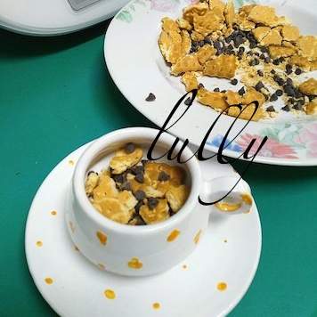 sbriciolare i biscotti e mescolarli alle gocce di cioccolato, distribuire nelle tazzine e bagnare con il caffè.