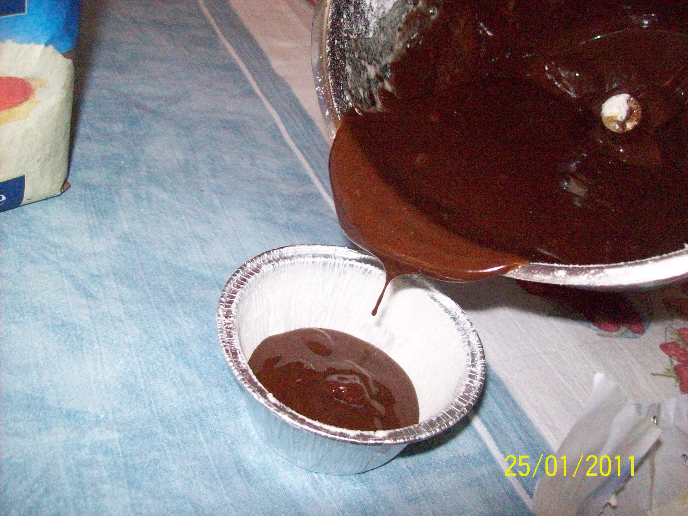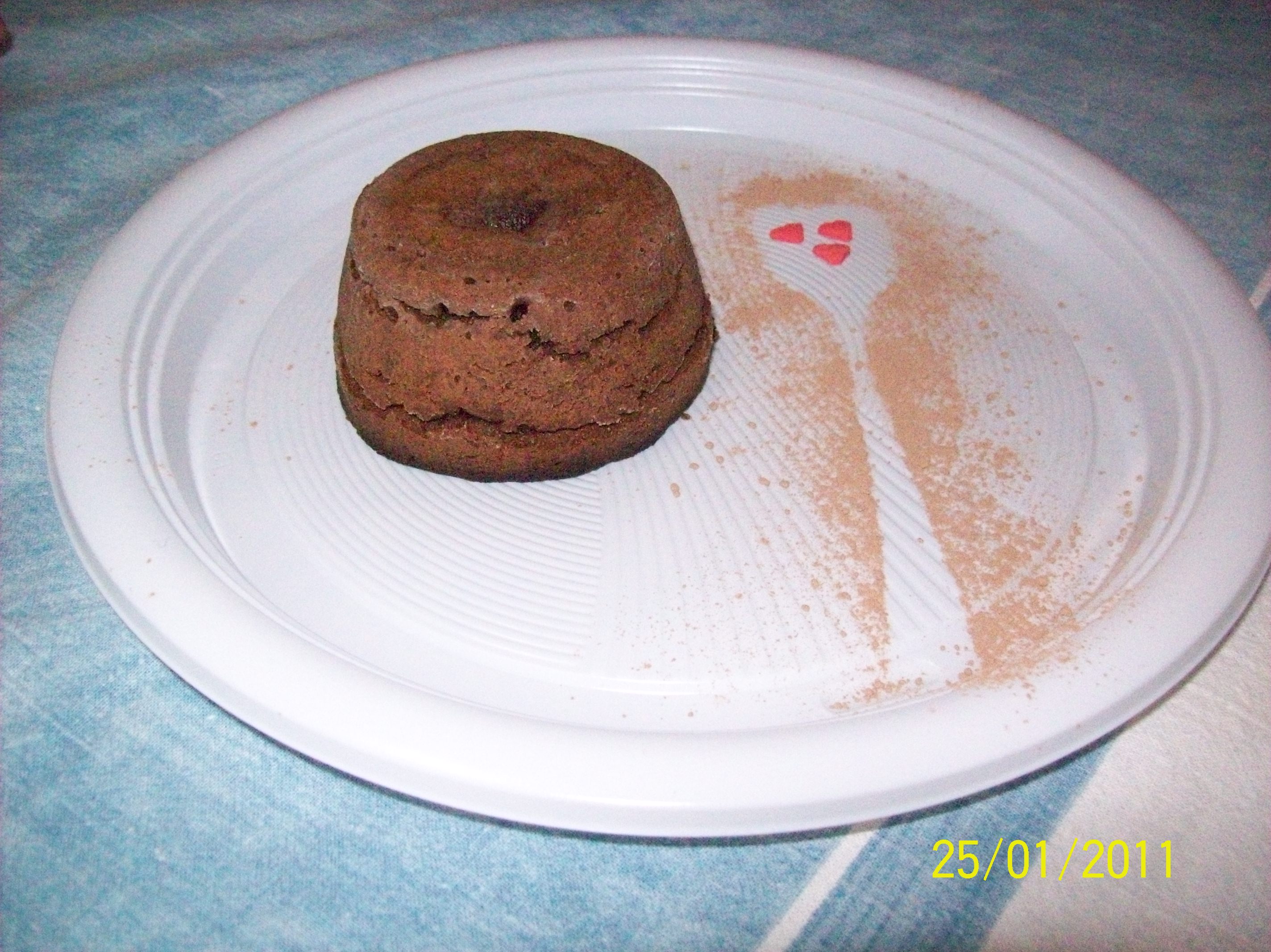 servire subito capovolgendo lo stampino al centro uscira un cuore liquido di cioccolato fondente