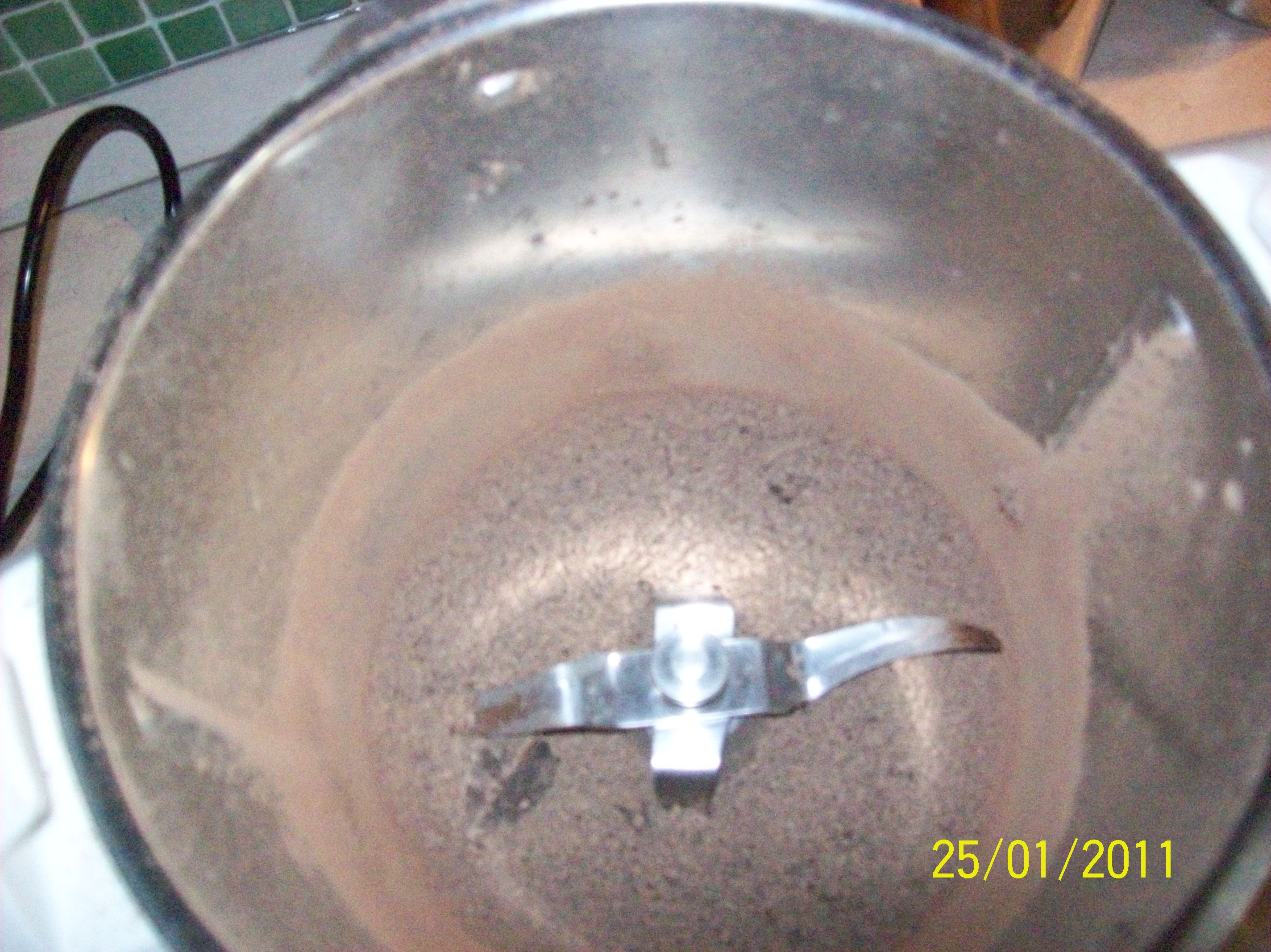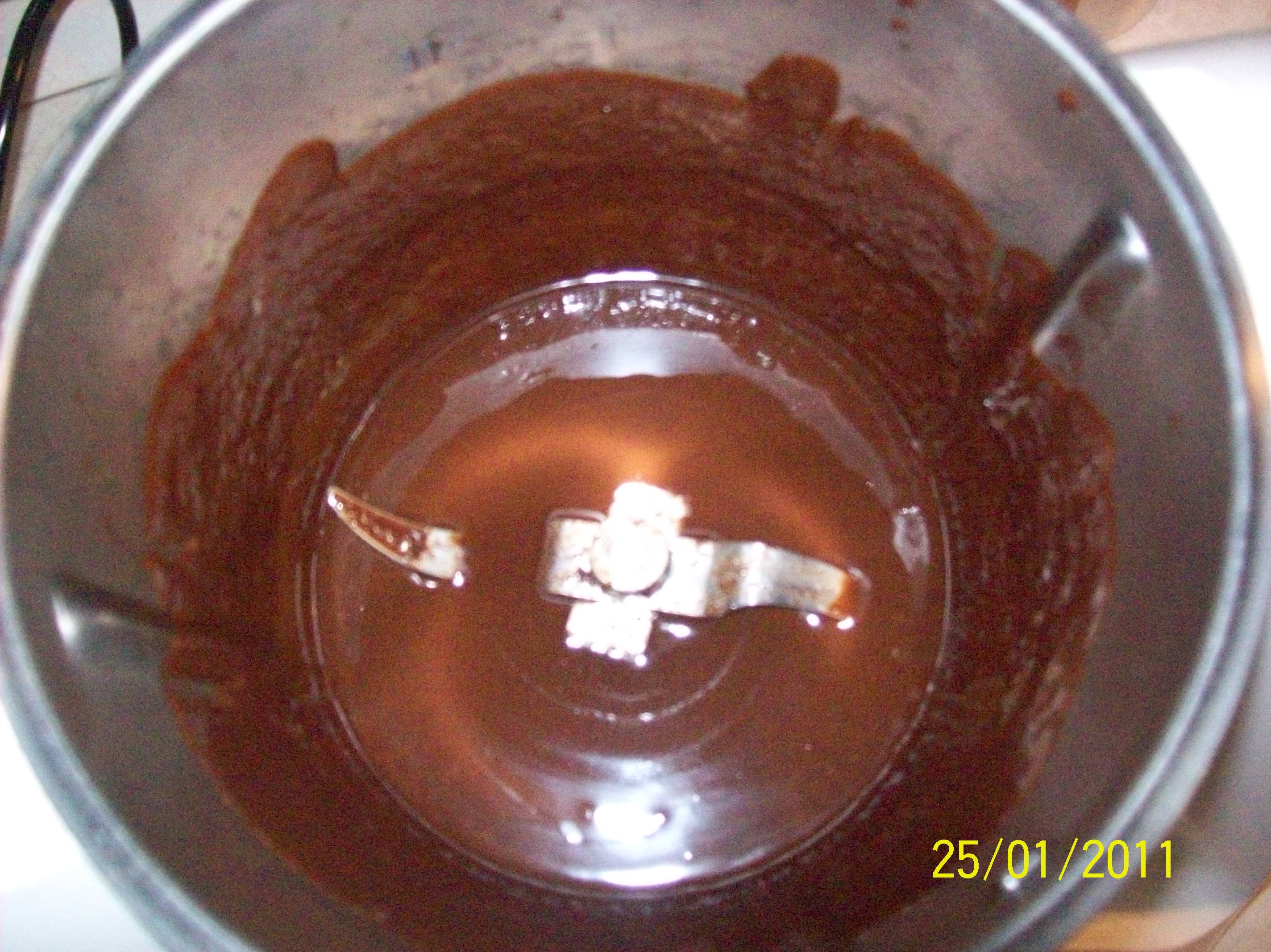 1. Mettere nel coperchio chiuso"coperchio chiuso" il cioccolato fondente e tritare 5 sec vel 7