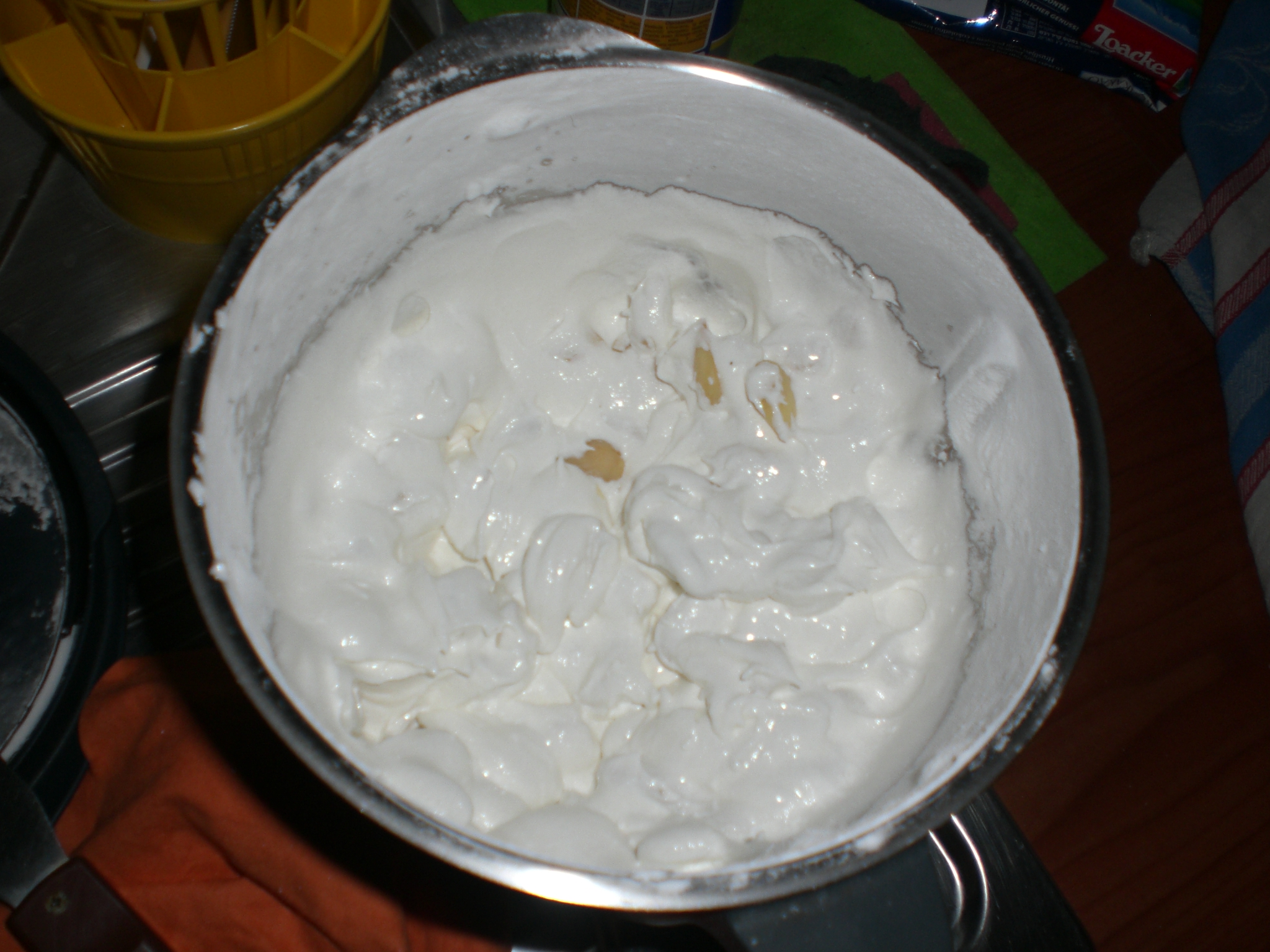 Riprendere la lavorazione aggiungendo lo zucchero e successivamente l'amido per 5 min. a vel. 3 senza temperatura.