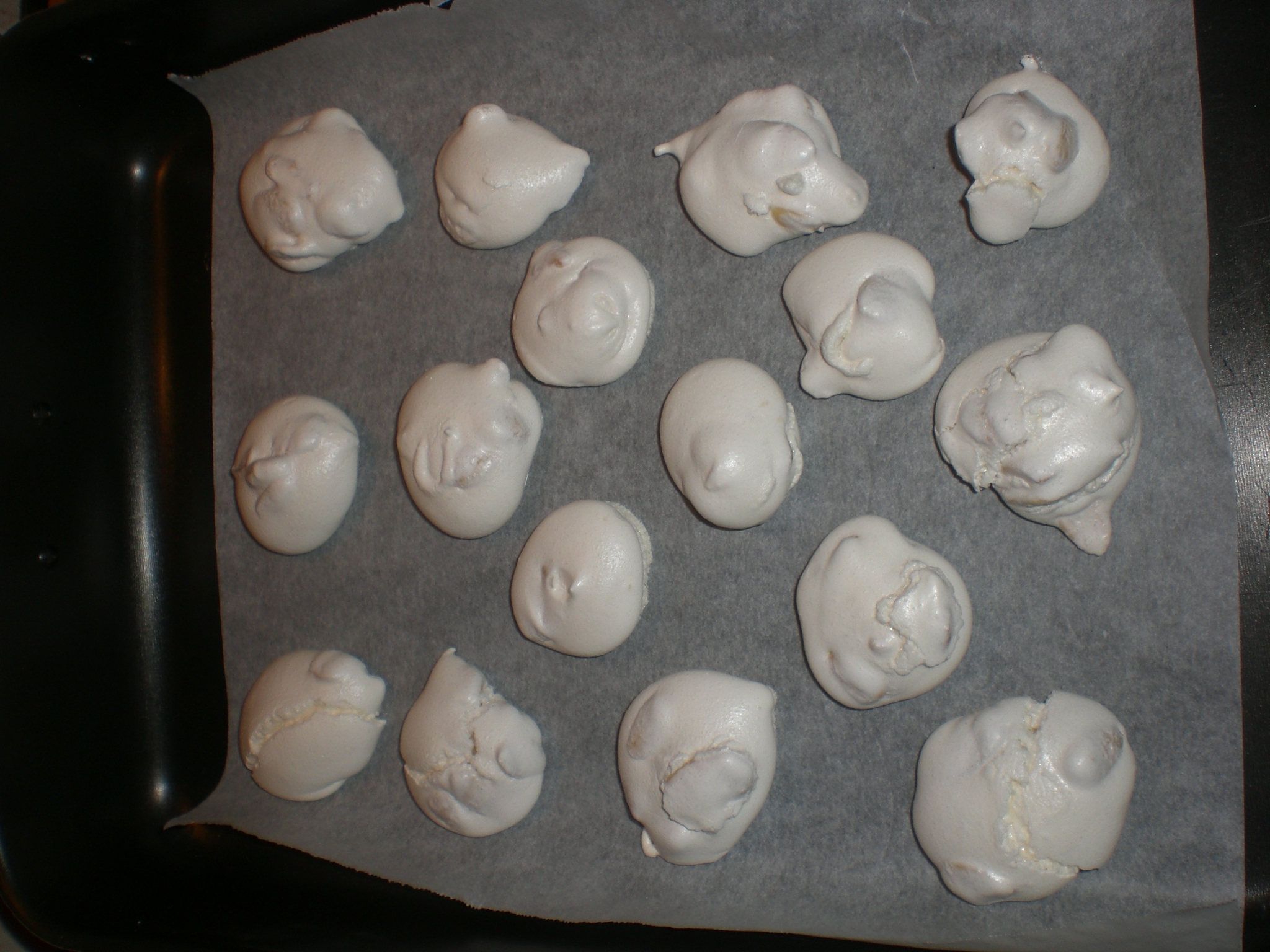 Gli albumi si sono un po' smontati durante la seconda lavorazione e quindi era impossibile fare dei mucchietti sulla leccarda. Allora ho messo l'impasto dentro a pirottini di silicone. Sapore molto buono. (Ci ho messo due cucchiaini di farina di cocco)