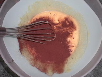 montare a neve 220 gr d'albumi con 100 gr. di zucchero a velo,sbattere 230 gr. di burro morbido con 100 gr. di zucchero a velo.Incorporare 185 gr. di tuorli leggermente sbattuti poco alla volta.Aggiungere 200 gr. di farina cetacciata 500 gr. di cacao dolce,12 gr. di lievito,vanillina,scorsa di limone o arancia,mescolare tutto asieme piano,sempre dal basso verso l'alto.