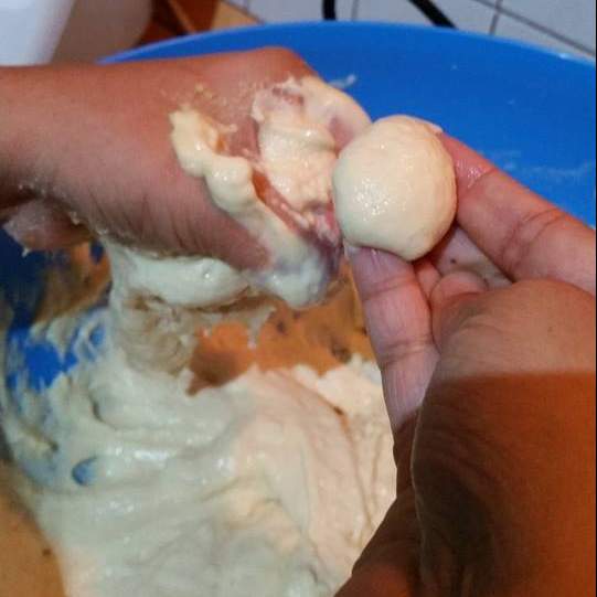 bagnate le punte delle dita prima di prendere la pallina...scivolerà meglio dentro la pentola
