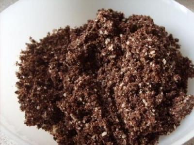 trittare le noci in un mixer col cioccolato e 60 gr. di zucchero facendo attenzione a non girare troppo a lungo il mixer.