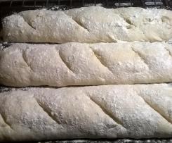 - 20 minuti prima dalla lievitazione accendete il forno a 250°C mettendo all'interno un pentolino vuoto, trascorso il tempo di lievitazione con un coltellino a lama fine fate dei taglietti non profondi ,le baguette devono cuocere a vapore quindi aprite il forno e mettete a cuocere le baguette e mettere 200 g di acqua nel pentolino quindi attenzione che deve fare vapore,chiudere subito lo sportello ..dopo 5 minuti con uno spruzzino pieno di acqua ,spruzzare sul pane ,chiudere e lasciare cuocere per 25 minuti a 230°C