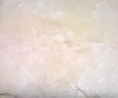 "velocità spiga" ,mettere l'impasto su una spianatoia con un po' di farina e cercare di creare una palla chiudendola su se stessa all'interno,mettere a lievitare in un contenitore con un po' di olio di semi,almeno due ore e copritela con una borsina di plastica o pellicola cosi' non fa' la crosta,mettetelo dentro al forno con la luce accesa,se avete freddo in casa accendete il forno a 50°C per 10 minuti e dopo infilate l'impasto,e' un modo per fare una buona lievitazione. - Una volta lievitata,la stendete sulla spianatoia con la farina e delicatamente iniziate ad allargarla con i polpastrelli delle dita.