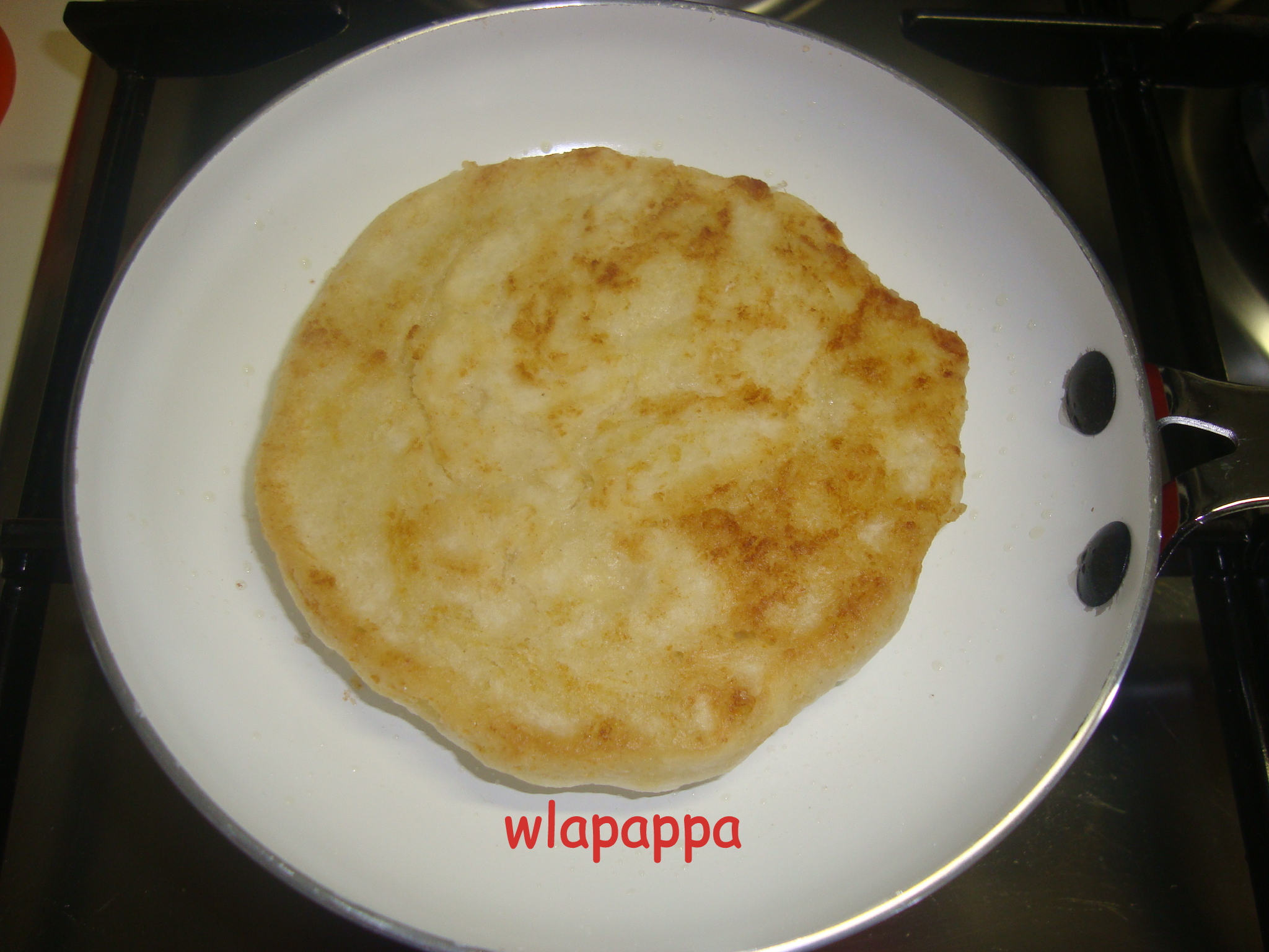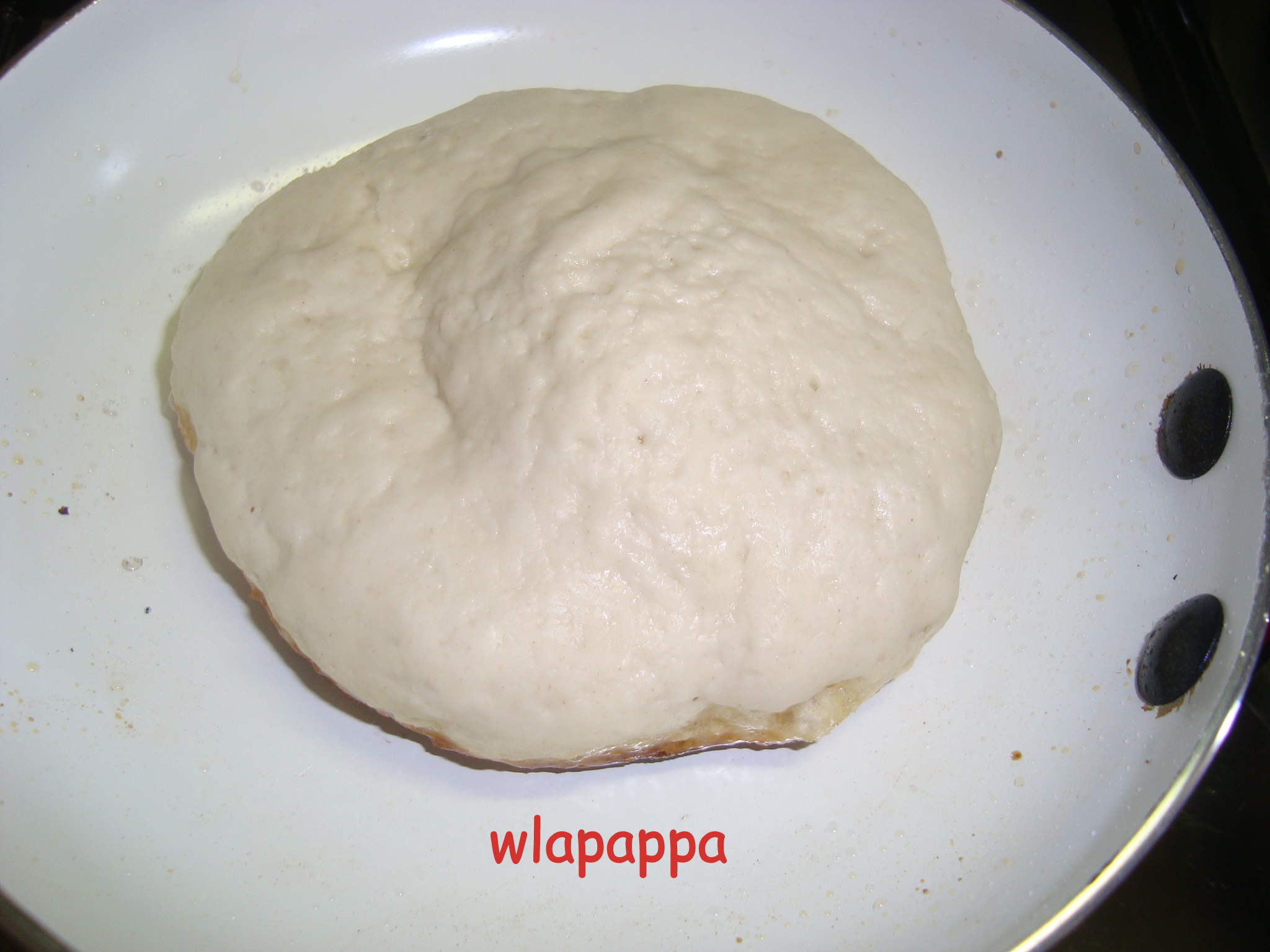 Ungere una pentolino antiaderente con olio o burro e cuocere qualche minuto da un lato (fino a che non si vede l'impasto che forma delle bollicine e si gonfia) e altrettanto dall'altro lato.