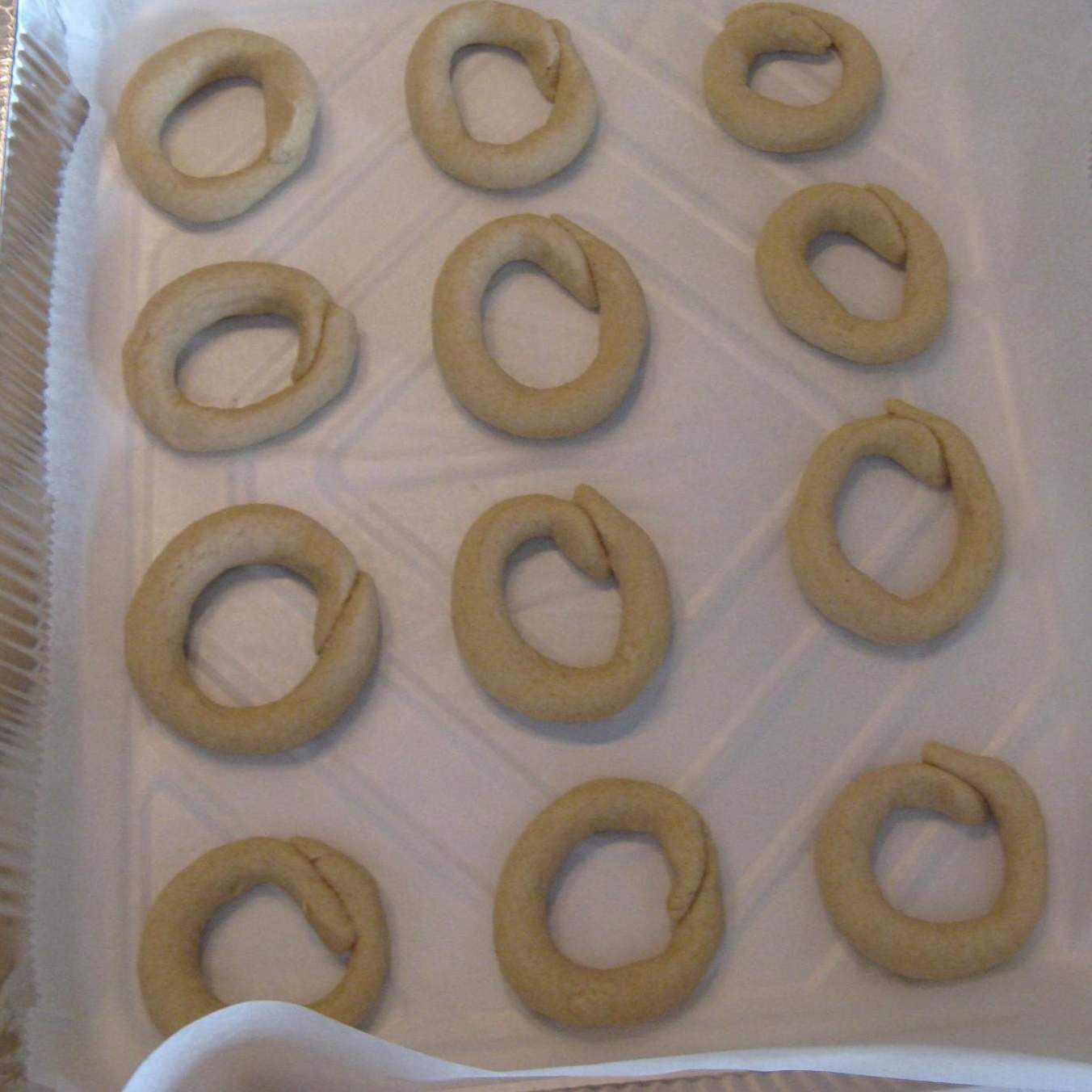 Se si vogliono più grandi e sottili, formare 8 ciambelline e schiacciarle prima di cuocerle.