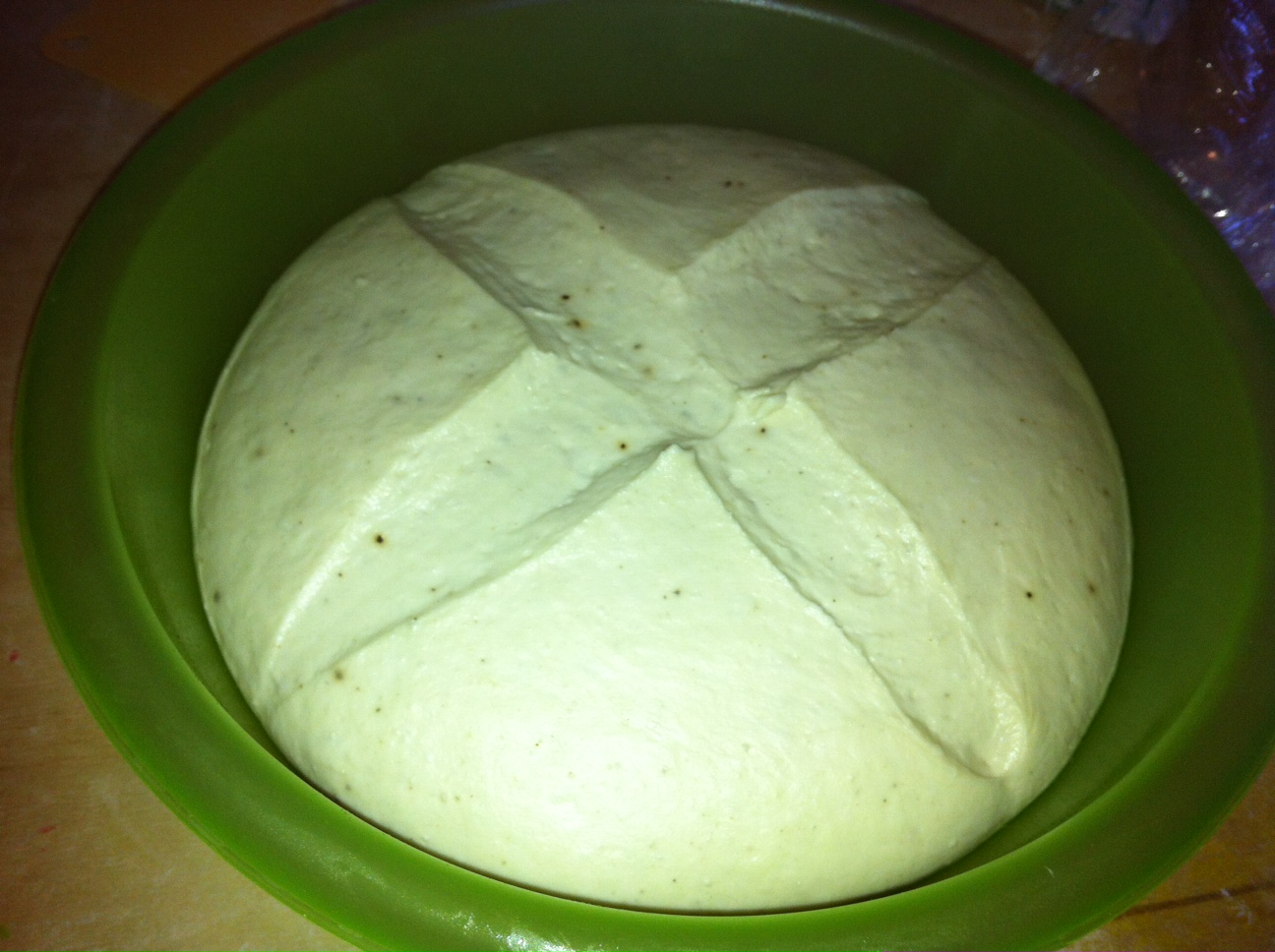 Lasciate lievitare nel forno spento, deve diventare più del doppio, il tempo dipenderà dalla forza del l.m., della farina e della temperatura (circa 6 ore).