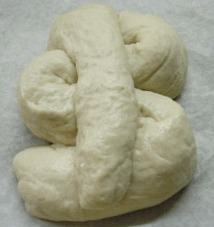 Dividete l'impasto in 4 parti e formate dei rotoli lunghi che modellerete a serpentina formando la "mafalda".