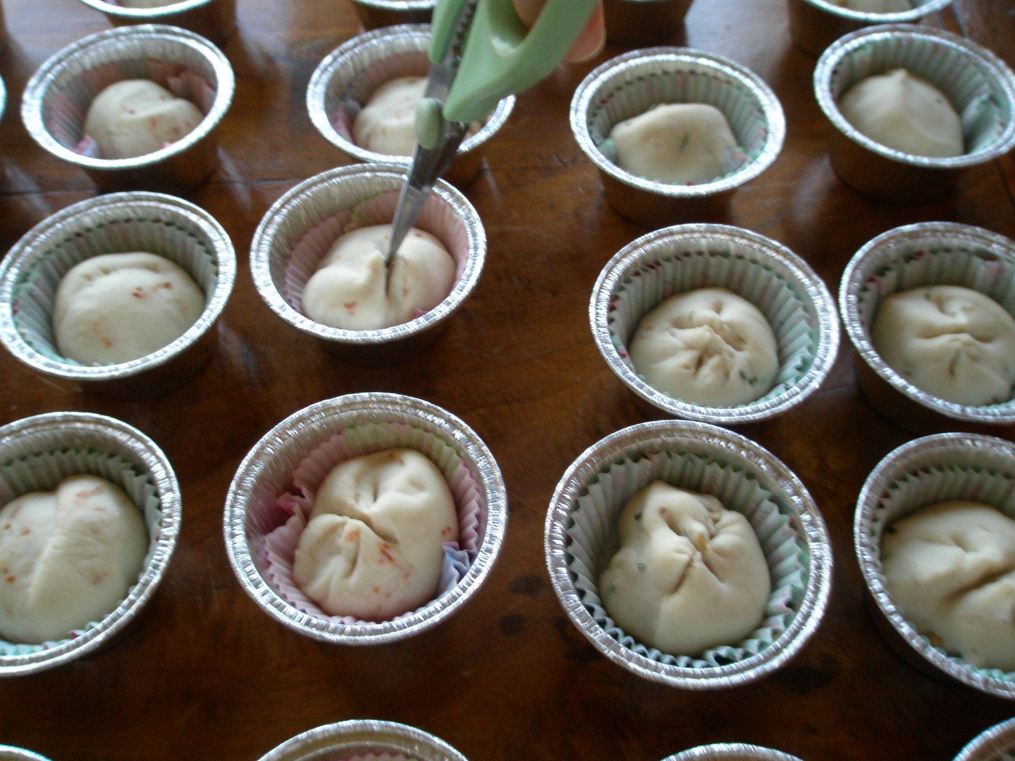 Lasciare lievitare una ventina di minuti poi fare un taglio a croce con la forbice.