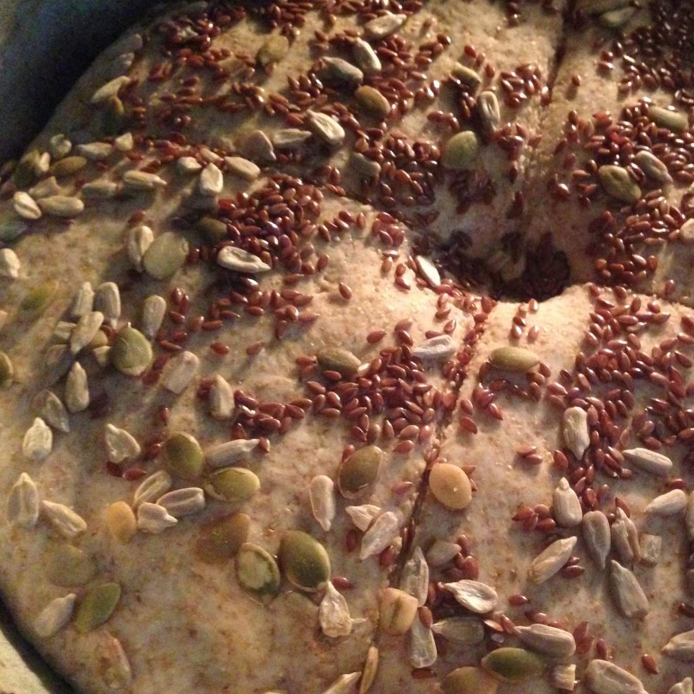 accendere il forno al massimo della potenza ,ripassare i tagli ,aggiungere a piacere semi vari come semi di lino ,semi di girasole e semi di zucca infornare ,chiudere il forno,abbassare la temperatura a 180 gradi e lasciare cuore per 20-25 min circa