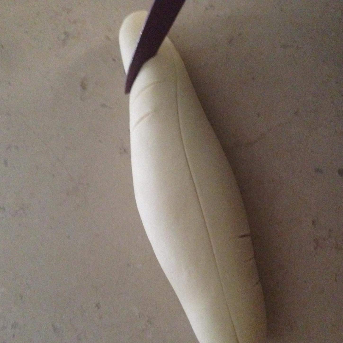 - con un coltello praticare un taglio leggerissimo per tutta la lunghezza del pane