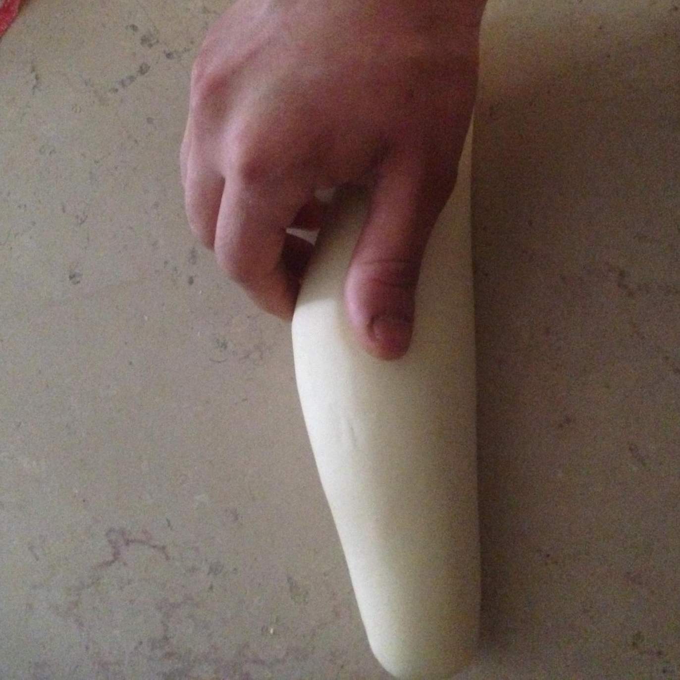 - iniziare ad arrotolare e allungare lisciando limpasto con le mani