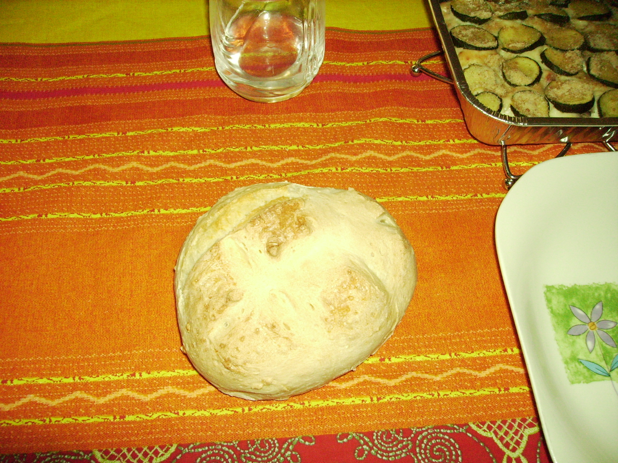 "velocità spiga" . Mettere l'impasto in una coppa leggermente infarinata, coprirlo con un canovaccio bagnato e strizzato e lasciarlo lievitare nel forno spento, per circa 50 minuti. Dividere l'impasto lievitato in 2 parti (o più, dipende dalla grandezza del pane che si desidera ottenere), con ciascuna formare una palla e sistemarle sulla placca del forno rivestita con carta da forno. Lasciare lievitare nel forno spento per altri 20 minuti. Estrarre la placca e accendere il forno a 200° ventilato; spennellare la superficie con un po' d'acqua (op. bagnarsi le mani e "accarezzare" il pane), cospargere di sale e con un coltello incidere la superficie, creando una griglia.