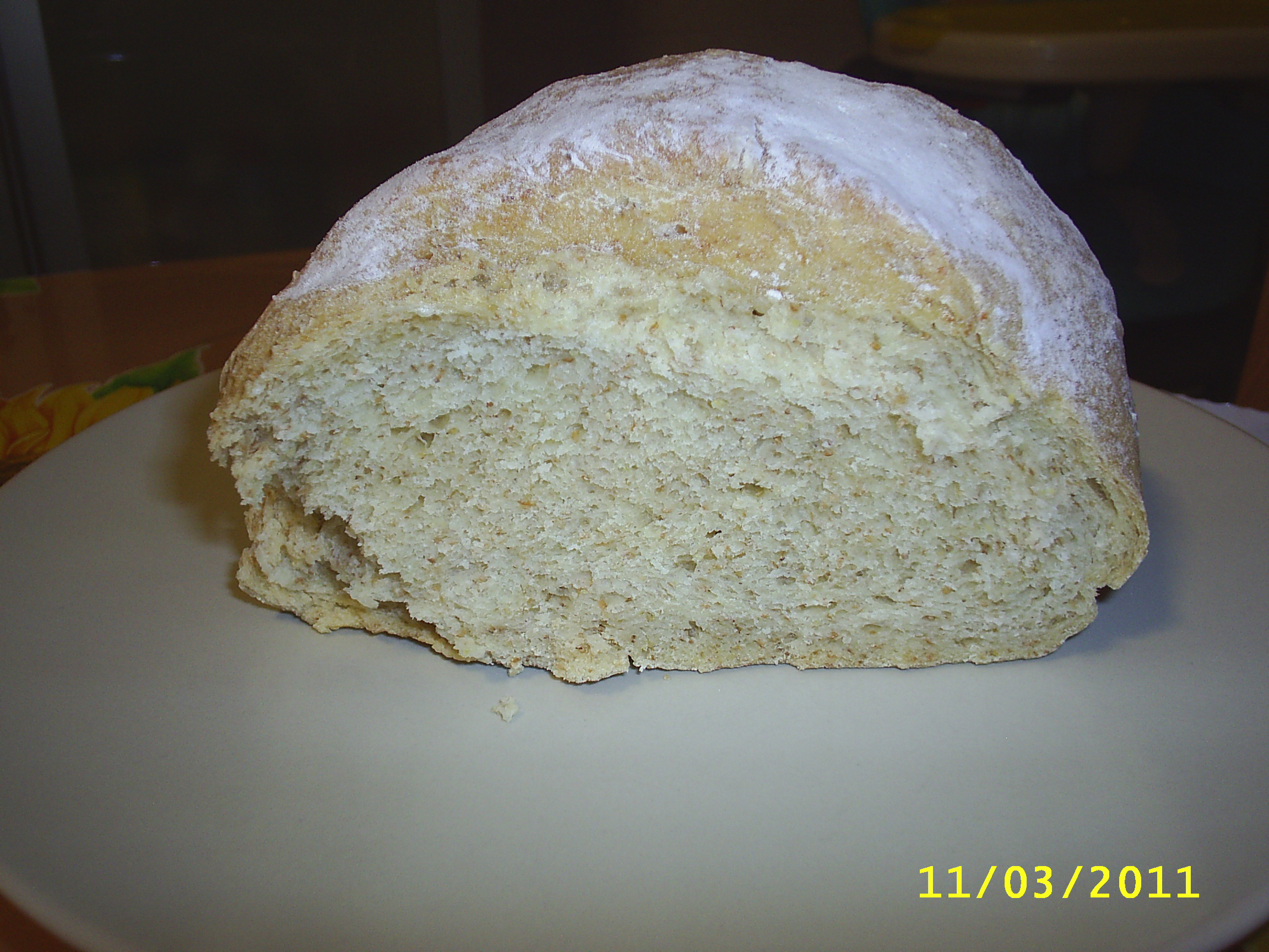 "velocità spiga" . Togliere l'impasto e metterlo in una zuppiera. Coprire con pellicola trasparente e lasciar lievitare in frigorifero per una notte. Il giorno dopo sgonfiare l'impasto e formare una pagnotta oppure dei panini. Mettere il pane sulla placca del forno rivestita con carta forno e coprirlo con uno strofinaccio. Lasciar lievitare per 2 ore in luogo caldo. Terminata la lievitazione fare delle incisioni oblique con un coltello sulla superficie del pane - spennellarlo con un pò di acqua e infarinarlo leggermente. Cuocere in forno preriscaldato a 200° C per 30 - 40 min. P.S. Si può sostituire parte della farina di tipo 0 con della semola di grano duro rimacinata ( io ho usato 250 g di farina e 150 g di semola ).
