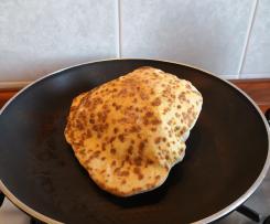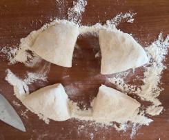 Nel frattempo mettete sul fuoco una padella, con una buona fiamma. - Stendete con un mattarello una pallina per volta, in modo da ricavare un disco spesso pochi mm (3-4 mm). Riponete in padella, e appena si formano le prime bollicine, girate il disco. Continuate a girare in modo che non bruci. Dopo un minuto inizierà a gonfiarsi. Giratelo un'ultima volta, e levate il palloncino dalla padella.
