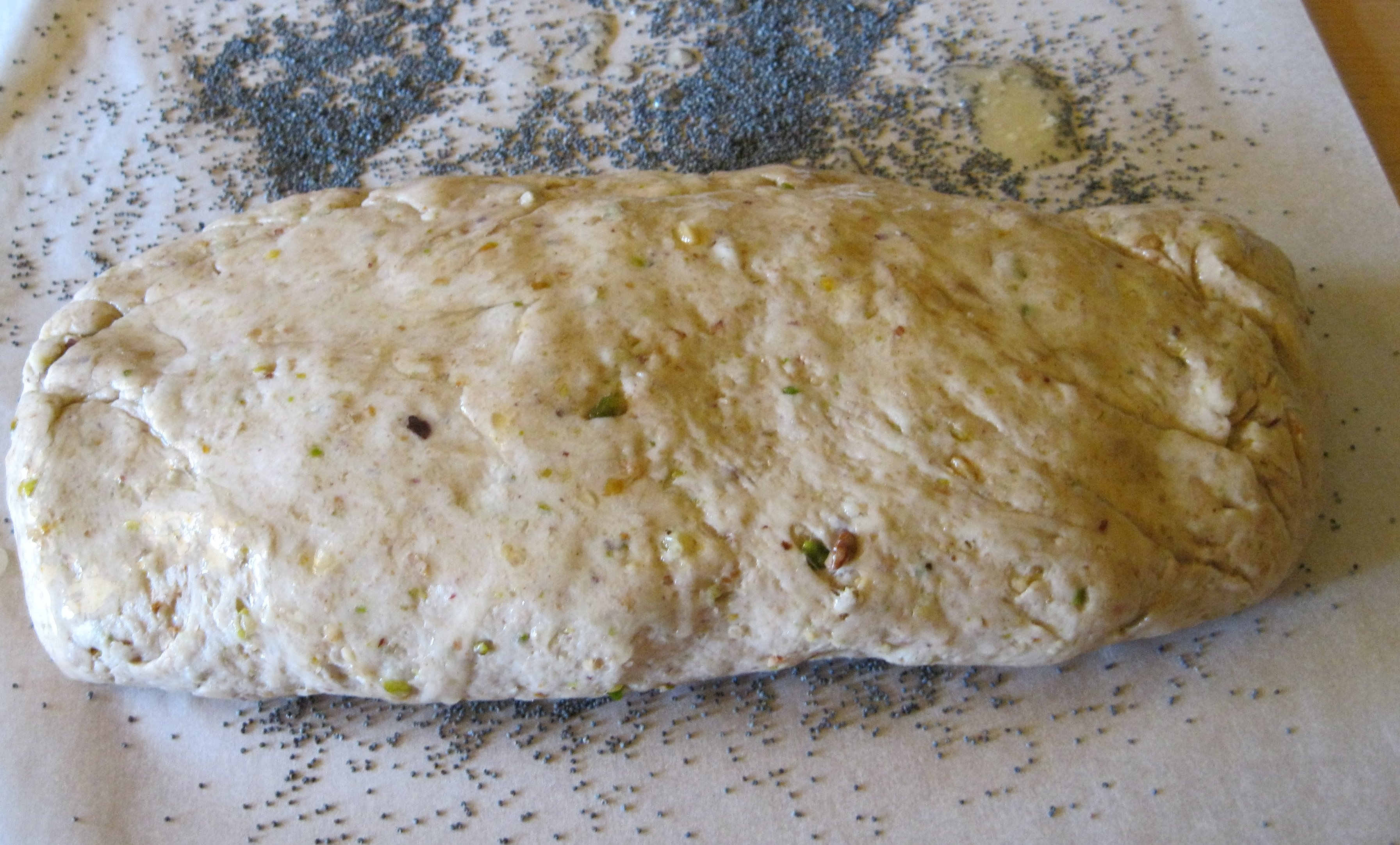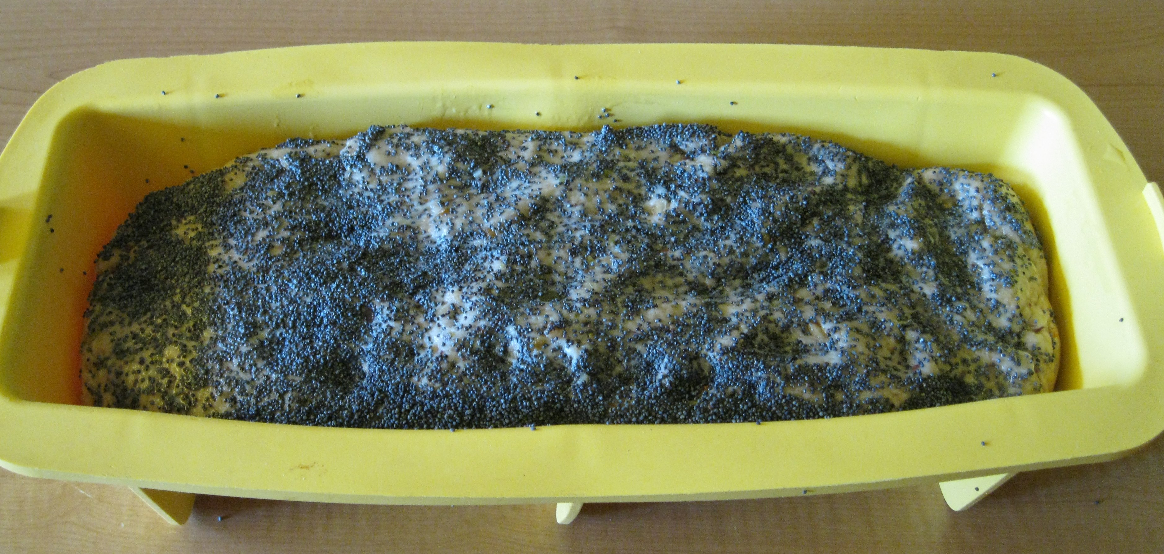 "velocità spiga" . Deve risultare un impasto morbido( se serve aggiungere del latte oppure della farina). Mettere a lievitare in una ciotola coperta da un panno fino al raddoppio. Riprendere l'impasto adagiarlo su carta da forno spennellare con il burro fuso e coprire con i semi di papavero . Mettere in uno stampo da plum cake coprire con un panno e fare lievitare fino al raddoppio. Mettere in forno caldo a 180° per 50m circa