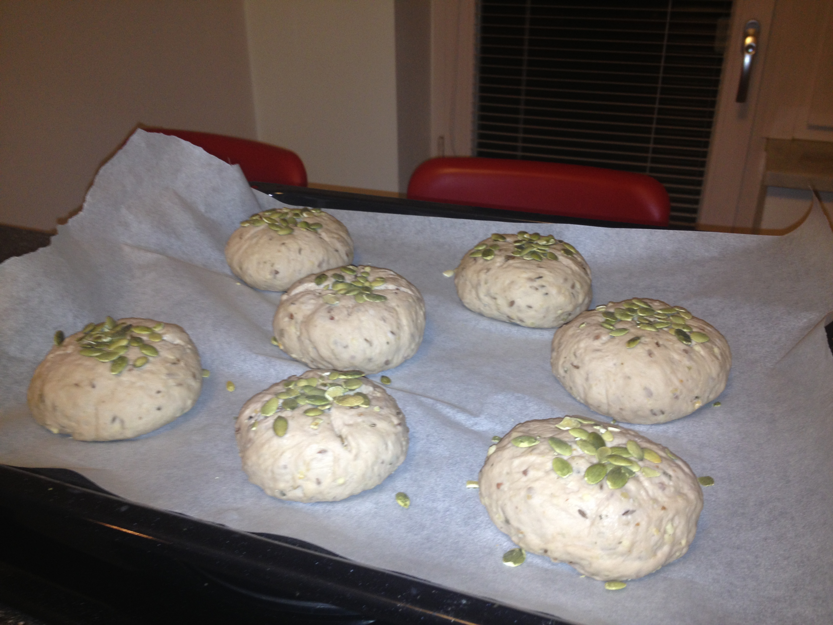 - Effettuare dei tagli sulla parte superiore e cospargere di semi di zucca i pani e fate riposare per almeno 45 min;