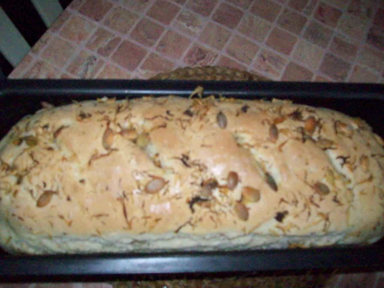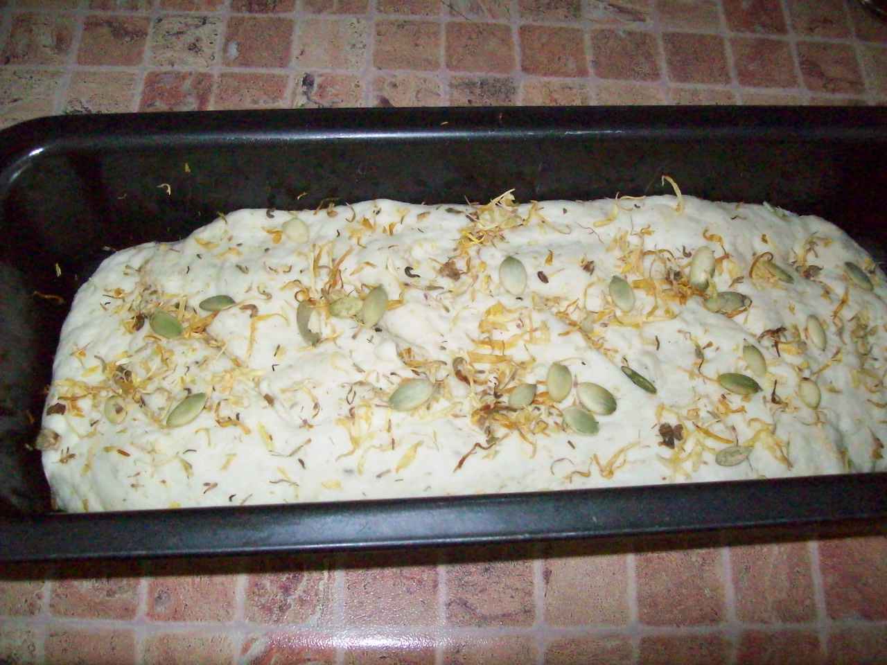 Formare il pane, fare dei tagli, cospargere di fiori rimanenti e di semi di zucca, lasciare ancora a lievitare.