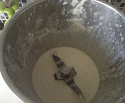 aggiungere la pasta madre spezzettata, sciogliere: 20 sec/vel3 - Aggiungere lo yogurt bianco, amalgamare: 20sec/ vel 3