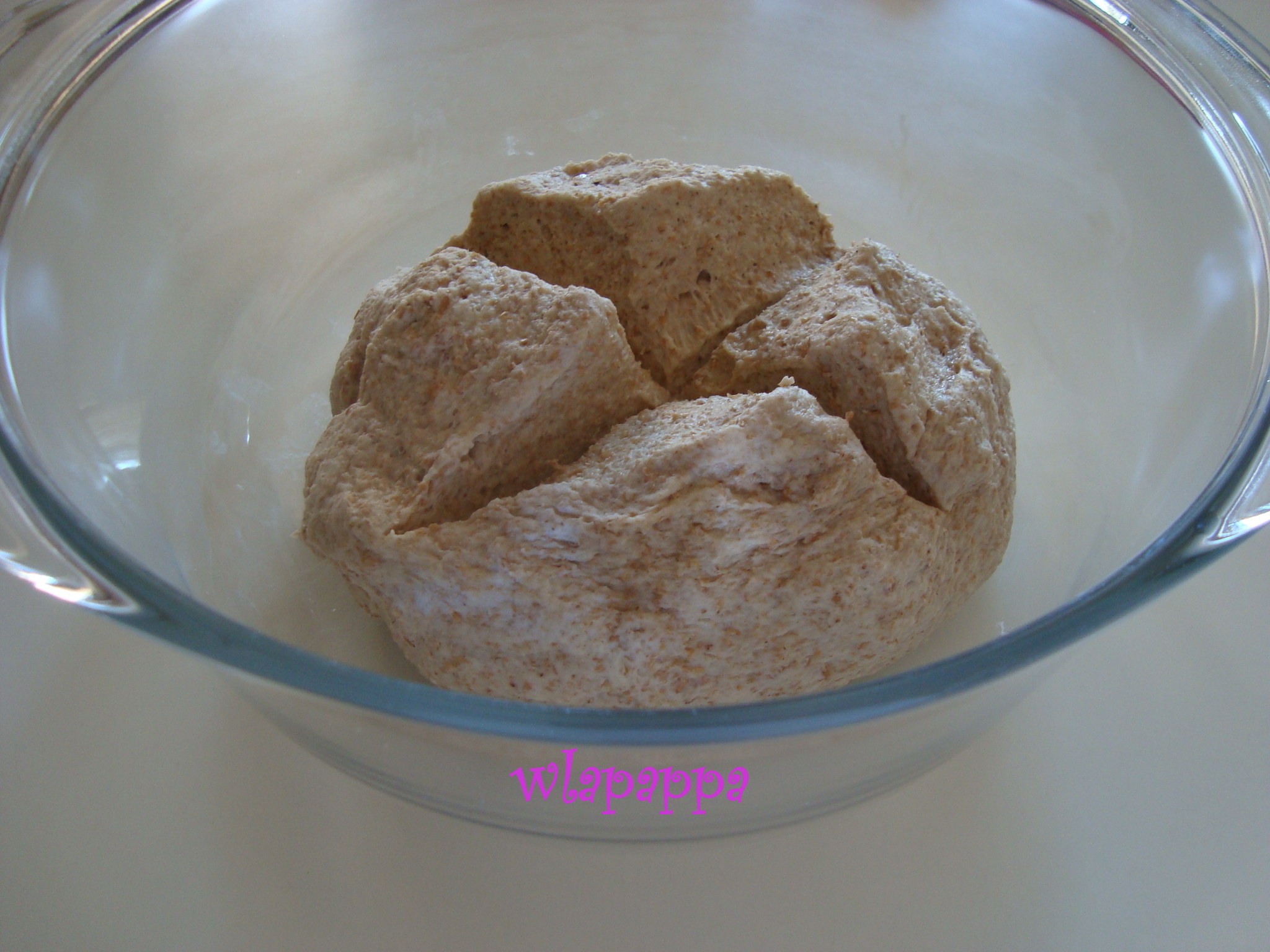 Con le mani formare una palla, inciderla a croce e mettere a lievitare in un contenitore chiuso con coperchio o pellicola nel forno spento, fino al raddoppio (in estate la mia è lievitata in 3 ore).