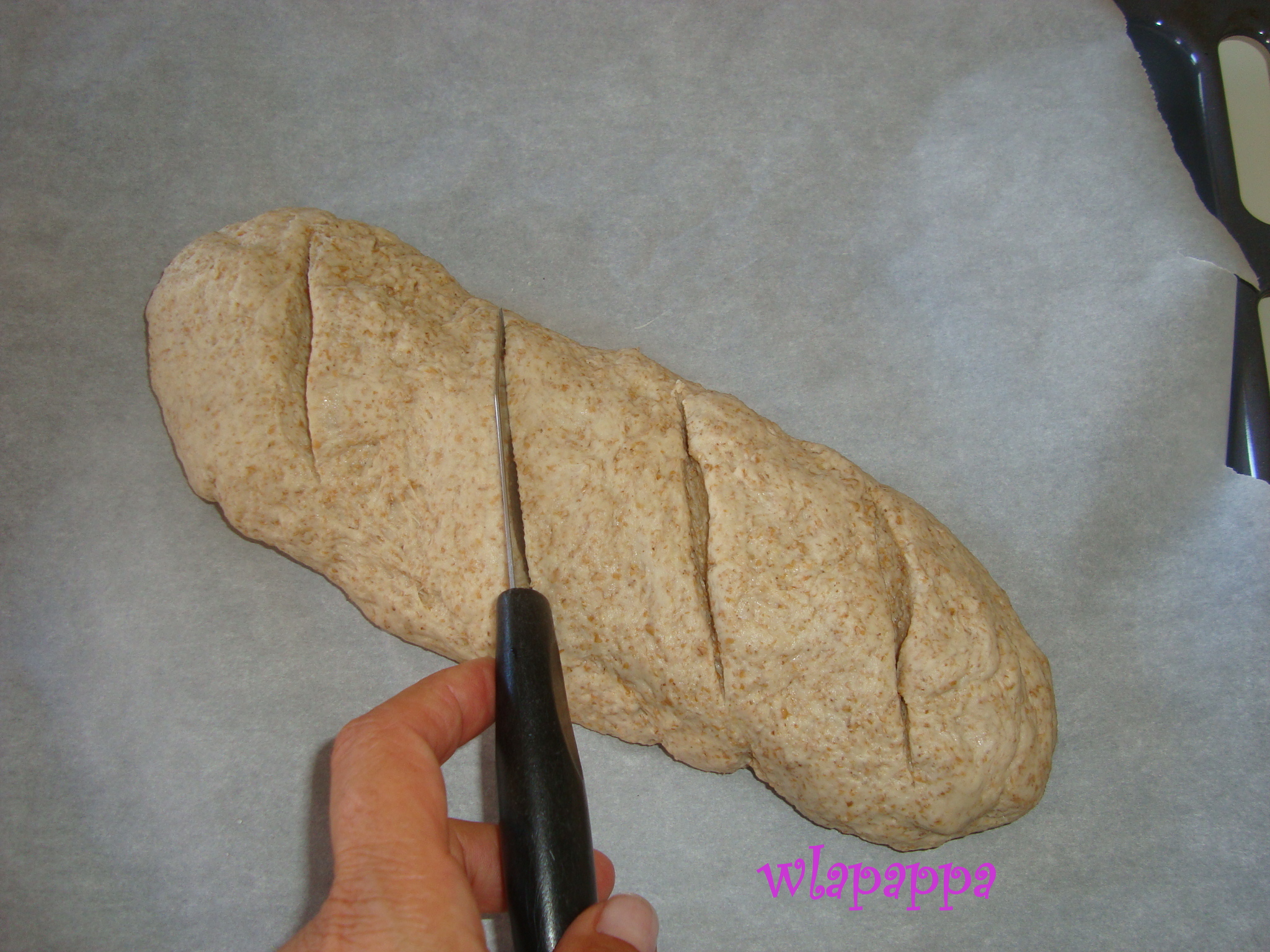 Lavorare con le mani l'impasto lievitato e formare un filoncino o dei panini, poi mettere sulla leccarda del forno coperta con un foglio di carta forno e far lievitare nuovamente un'ora circa nel forno spento (il mio ha il programma lievitazione che mantiene la temperatura costante a 40°).