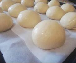 "velocità spiga" .L'impasto dovrà risultare compatto e staccarsi dalle pareti. Rovesciamo e compattiamo l'impasto in una ciotola.Copriamo con pellicola e lasciamo lievitare in luogo caldo fino al raddoppio.Una volta raddoppiati riprendiamo l’impasto, lo capovolgiamo su una spianatoia infarinata e facendo pressione con i polpastrelli lo sgonfiamo. Tagliamo e ne ricaviamo dei pezzi facendo attenzione che siano tutti più o meno uguali (vi consiglio di pesarli) per i mignon da buffet saranno sufficienti 25/30g di peso, i miei sono da 50g circa.Formiamo delle palline: roteiamo l’impasto sul palmo di una mano con il pollice ed il medio dell’altra mano, adagiande sulla leccarda da forno e lasciate lievitare ancora una mezz’ora.Spennellate con un tuorlo e latte sbattuti.In forno a 190° statico 15 minuti circa.