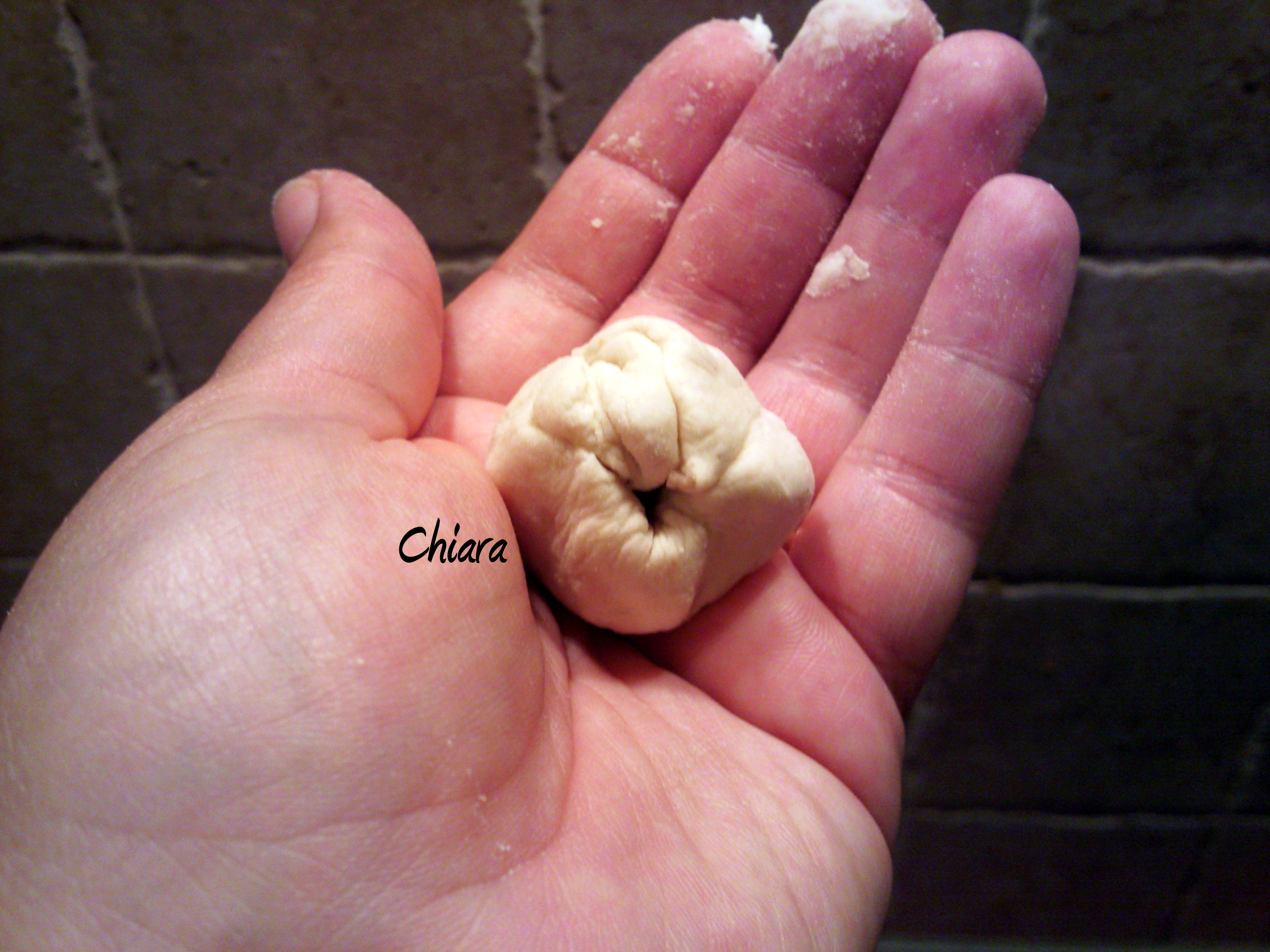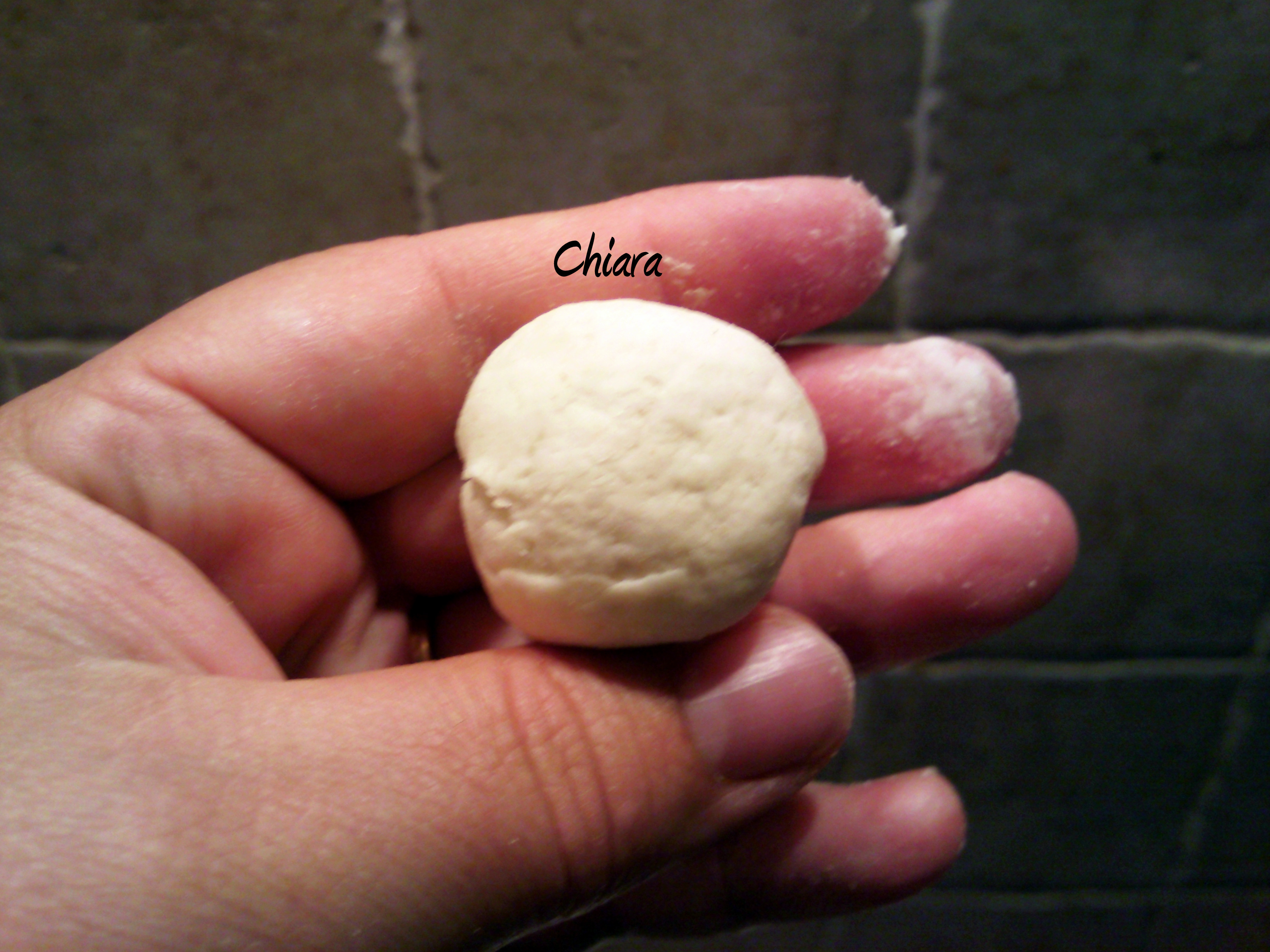 Prendere dei pezzetti di pasta e formare delle palline senza arrotolarle e senza lavorare troppo la pasta: appiattire delicatamente