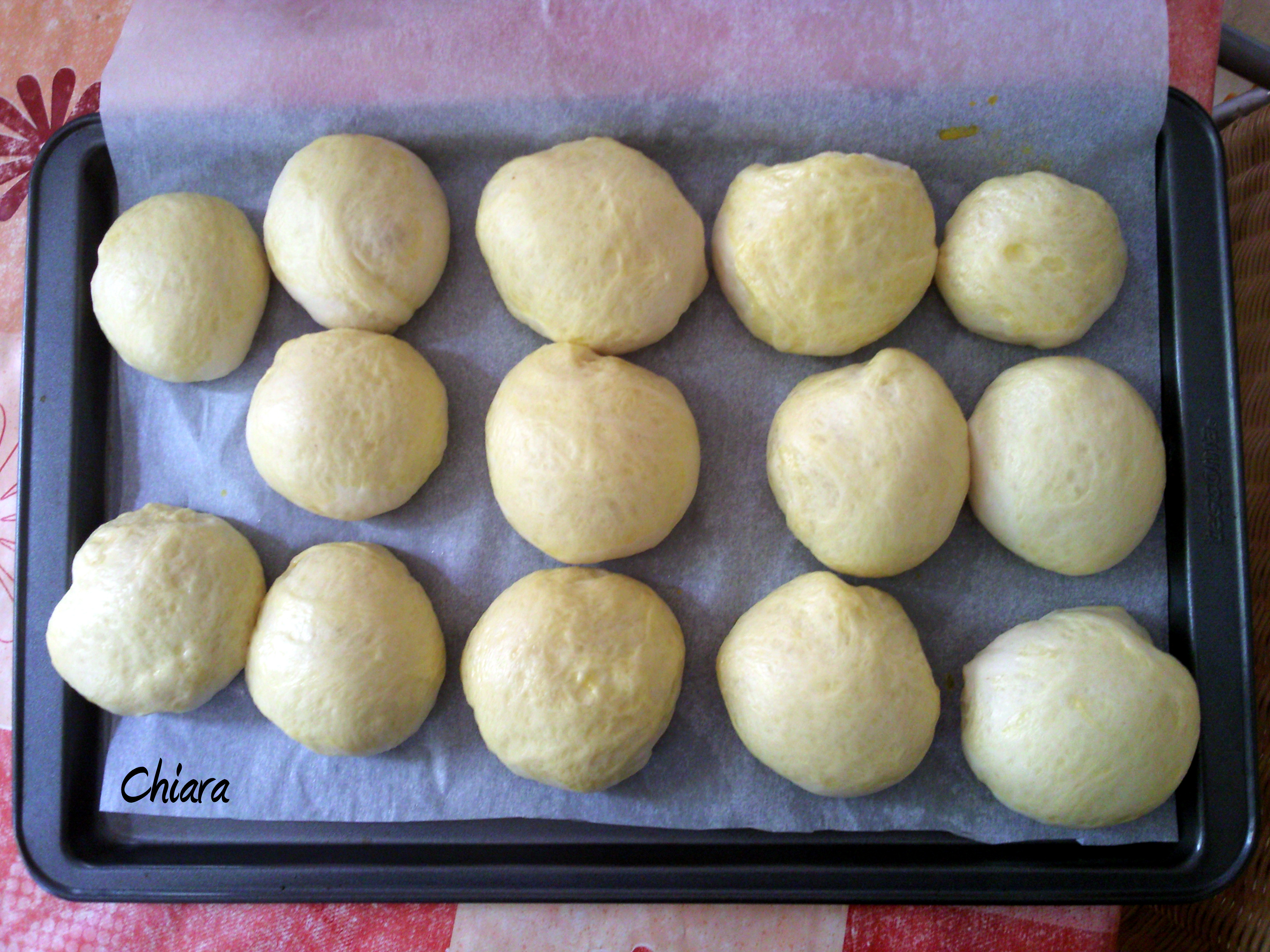 Posizionare le palline ben distanziate su una teglia (2), spennellare con l'uovo sbattuto e lasciar lievitare ancora 1 ora.