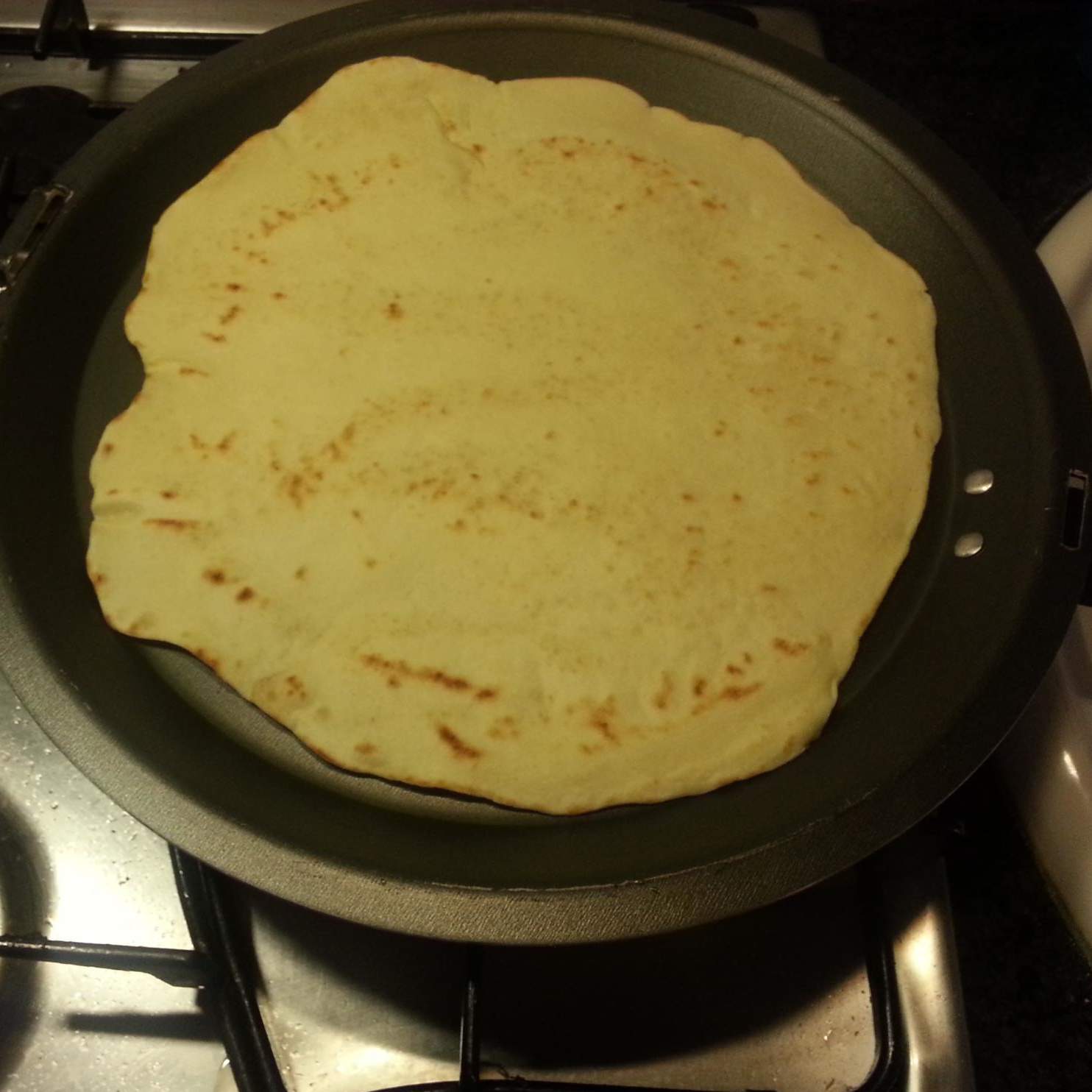 Disporre ogni piadina nella padella calda appena oleata e cuocere dai due lati (cuoce in pochissimo tempo).