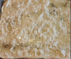"velocità spiga" . L'impasto risulterà ben compatto quindi versare su una teglia da forno un po di olio e stendere con le mani allargare fino a quanto potete poi lasciar lievitare per 35,40 minuti in forno con luce accesa. Accendere il forno ventilato a 200 gradi stendere bene con le mani bucherellare con forchetta mettere un po di sale origano e olio a piacere e infornare fino a che non diventa dorata.