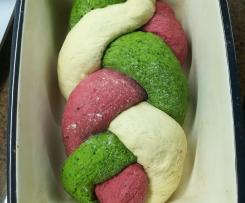 Trasferire l'impasto in una ciotola, coprire con un canovaccio e lasciar lievitare - Quando gli impasto saranno lievitati(circa 2-3 ore dopo) traferirli sulla spianatoia e praticare 3 giri di pieghe per ogni impasto. Lasciar riposare per circa 30 min. Creare dei rotolini e intrecciare. Trasferire nella teglia Betty e lasciar lievitare ancora per circa 1 ora.