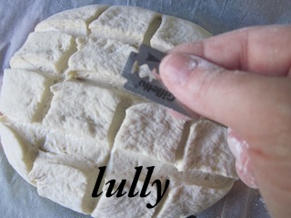 dare ora alla pasta una forma di pagnotta e con un coltellino affilato o una lametta praticare in superficie 3 tagli orizzontali e 3 verticali.