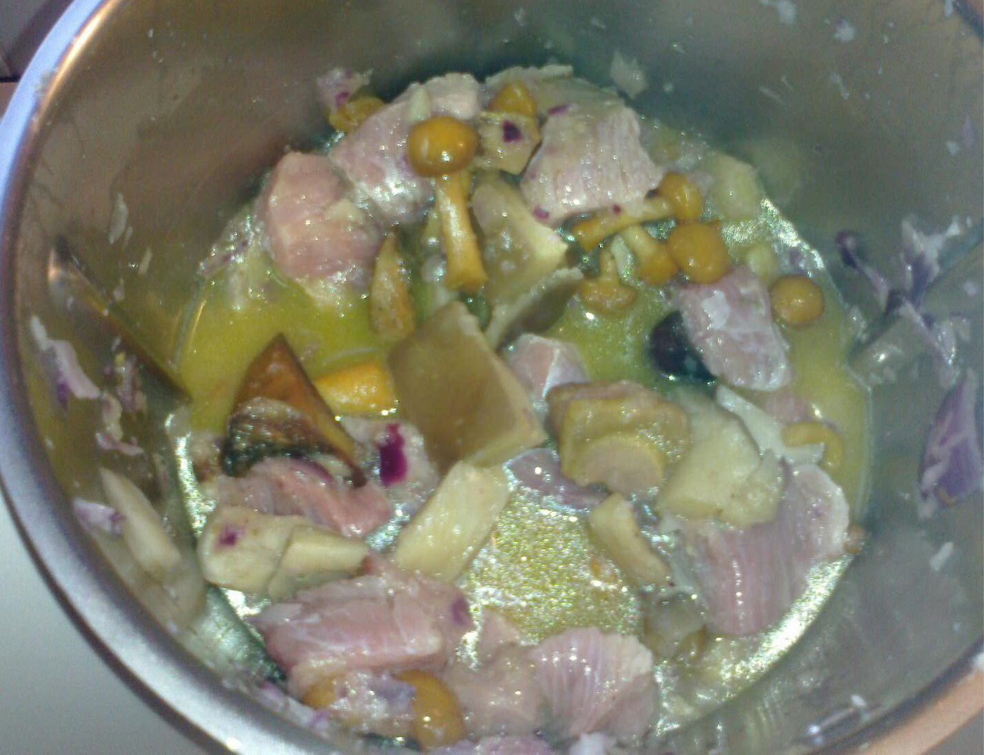 - 500 g di spalla di maiale, tagliata a tocchetti e bocconcini di vitello
