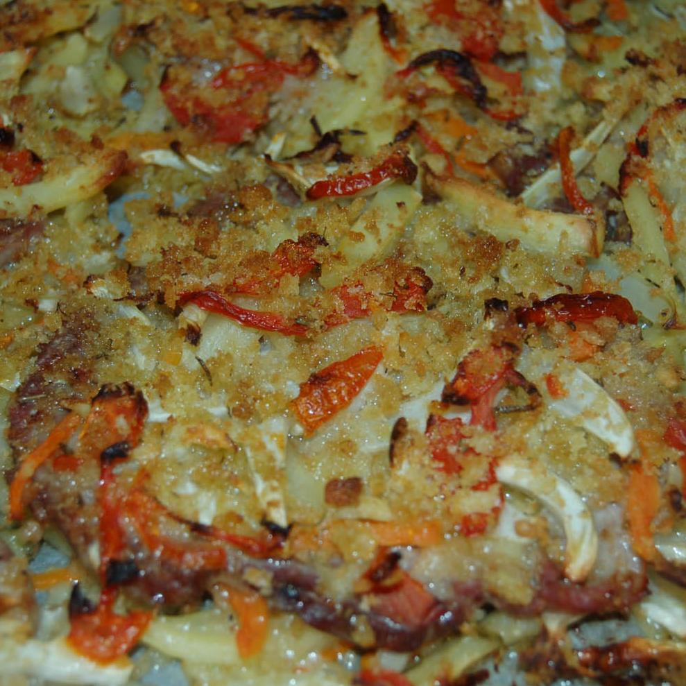 Preparata x pranzo buonissima...io ho fatto le fettine di lonza xk più leggere con patate zucchine e carote a rondelle condite con pangrattato insaporito con sale alle erbe aromatiche fatto nel bimby....da rifare ancora anche xk prepari secondo e contorno in un lampo