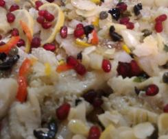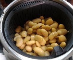 "coperchio chiuso" . Chiudere il coperchio e mettere il varoma con i filetti di merluzzo. Cuocere per 20 min temp Varoma vel 1. - 3. A cottura ultimata comporre il piatto da portata mettendo alla base i fagioli bianchi e adagiando i filetti di merluzzo con il condimento. Versare ancora un filo d'olio evo a crudo e guarnire con i chicchi di melograno, le mandorle e qualche foglia di prezzemolo. Servire caldo.