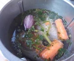Io ho usato le cosce di tacchino perche' e' un a parte che rimane piu saporita e meno stopposa del petto si puo' usare anche cosce pollo il brodo e' buona da fare risotti minestre o zuppe ma se non lo volete usare subito lo potete consercare in frigorifero in un contenitote coperto per qualche giorno oppure lo potete anche congelare ho usato il finocchietto selvatico per dare una nota di freschezza in piu