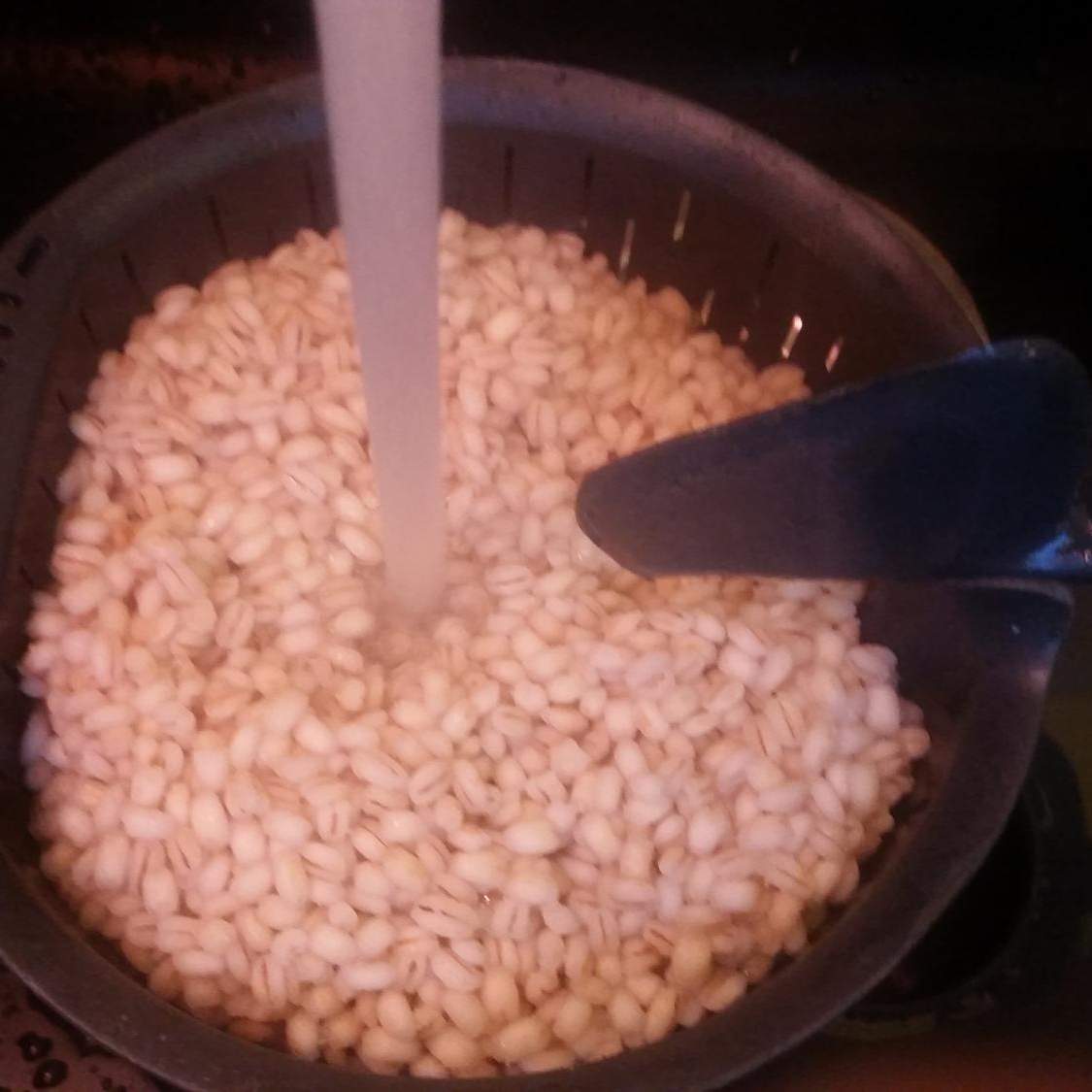 Una volta cotto l'orzo tirate fuori con aiuto della spatola e raffreddare sotto acqua corrente per fermare la cottura e scolatelo bene dal acqua in eccesso