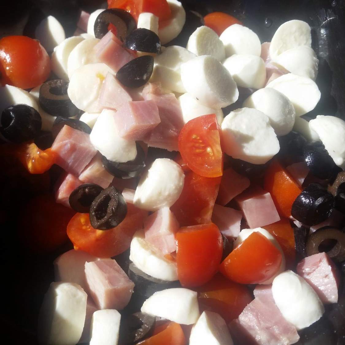 Nel frattempo in una ciolola preparate gli altri ingredienti per insalata di orzo come ho fatto io Ora tenete controllato la frittata io l'ho cotta un po di piu proprio per permermi di creare poi dei dischetti