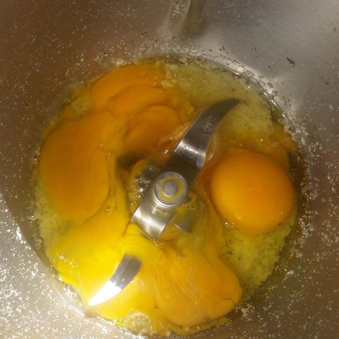 Unite le 4 uova intere e pizzico di sale e amalgamate per 20 Sec Vel 2