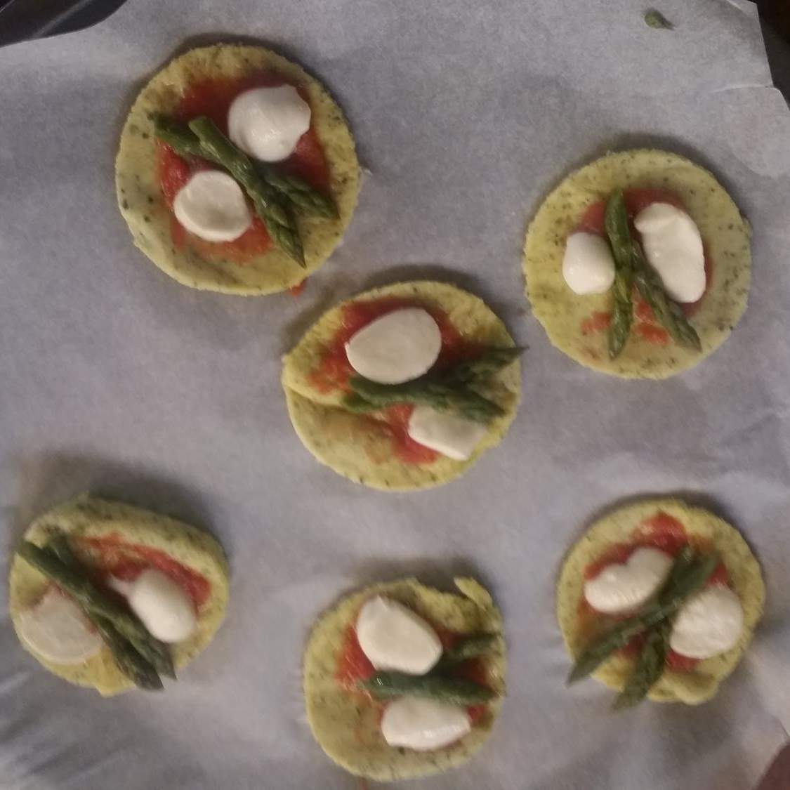 Farcite con salsa di pomodoro a crudo gia salata qualche pezzo di mozzarellina e in fine qualche punta di asparagi e metterle nel grill del forno gia caldo a 250° per 3/4 minuti e servite con la Insalata Fantasia di orzo