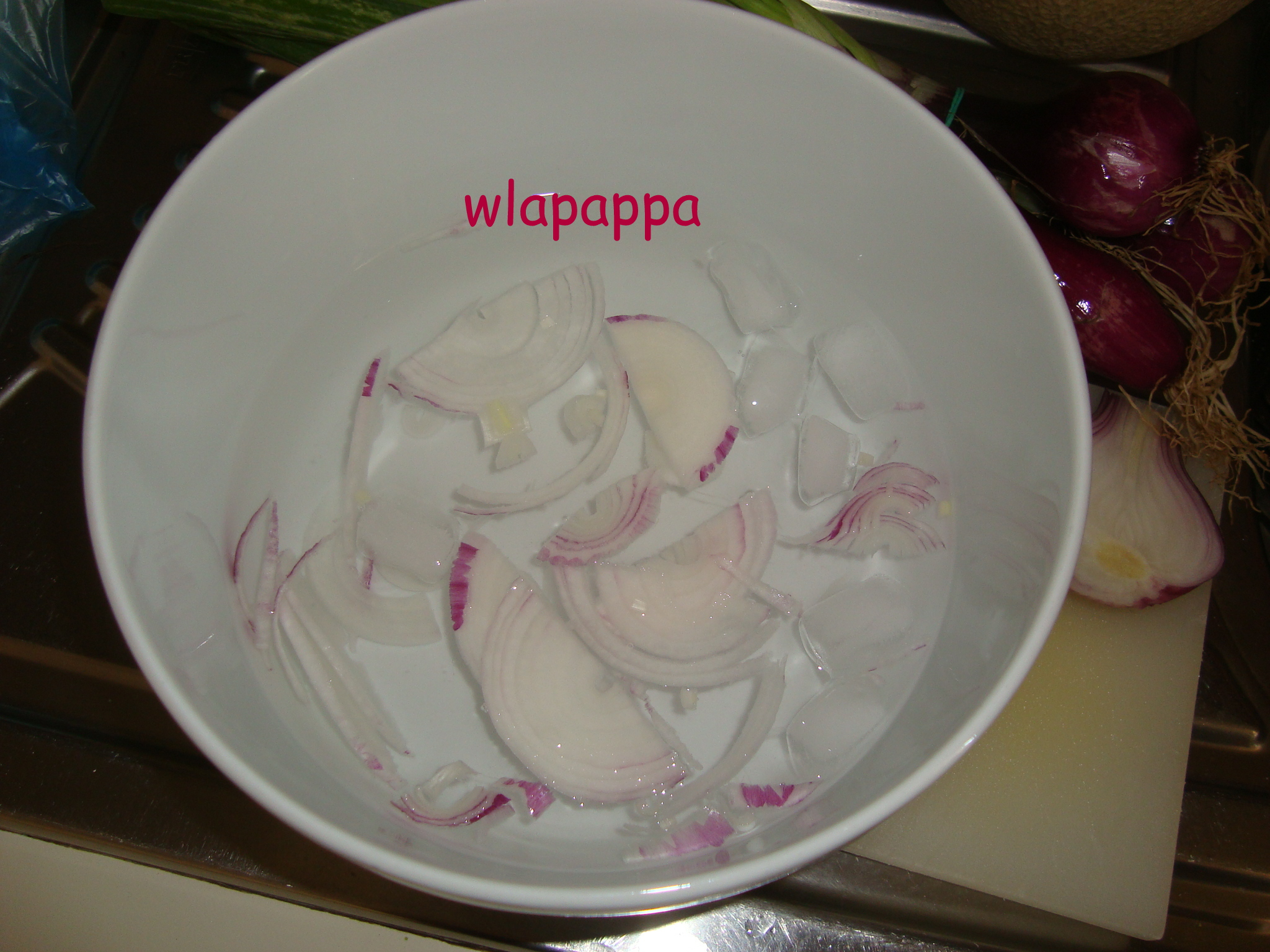 "coperchio chiuso" e proseguire la cottura per 8 minuti temp. varoma, vel. 1.Tagliare il cipollotto a fettine sottili ed immergerlo in una bacinella con acqua e ghiaccio.