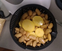 "coperchio chiuso" , posizionare il cestello e poi il varoma sul coperchio. Cuocere per 30 min temp varoma vel 1. - 3. A cottura ultimata preparare il piatto da portata mettendo come base le patate e i fagioli. Poi posizionare gli involtini e le verdure. Condire con un filo d'olio evo. Servire caldo.