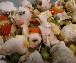 - 1. Sbucciare e tagliare le patate a fettine e metterle insieme ai fagioli (scolati) nel cestello. Tagliare a fettine sottili la scamorza. Tagliare gli asparagi e il peperone rosso a pezzi. Comporre gli involtini mettendo sulle fettine di pollo (sottili) una fettina di speck, una di scamorza e un pezzetto di pomodorino secco. Arrotolare e chiudere con uno stuzzicadenti. Riempire il recipiente e il vassolio del varoma con gli involtini e le verdure (asparagi, pomodorini, peperone). Salare.