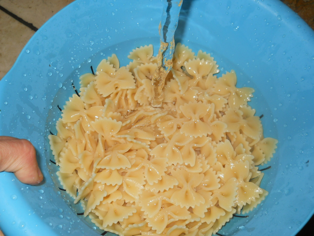 "velocità soft" Ora scolate la pasta e rafreddare sotto acqua corrente cosi rimarrà al dente fate sgocciolare bene. Una volta fatto inseritela nella ciotola con le verdure. - Ora prendere il primosale e asciugatelo bene con della carta da cucina in modo di togliere il liquido in eccesso.
