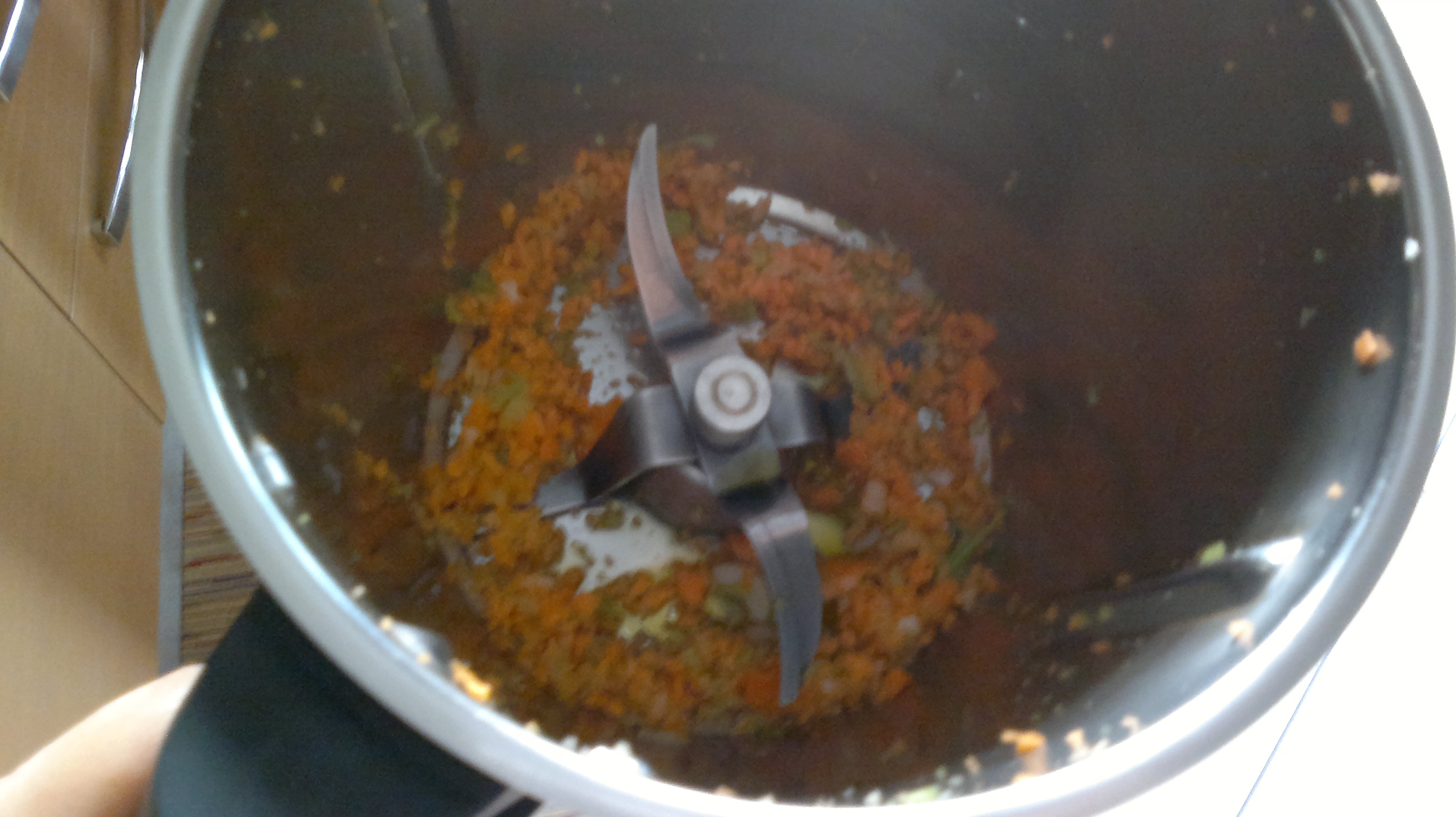 "velocità soft" . Controllare di sale ed aggiungere un pò di concentrato di pomodoro ( non deve essere troppo pieno di sugo ma leggermente rossastro quindi regolarsi secondo i propri gusti ): 5 min. 100°